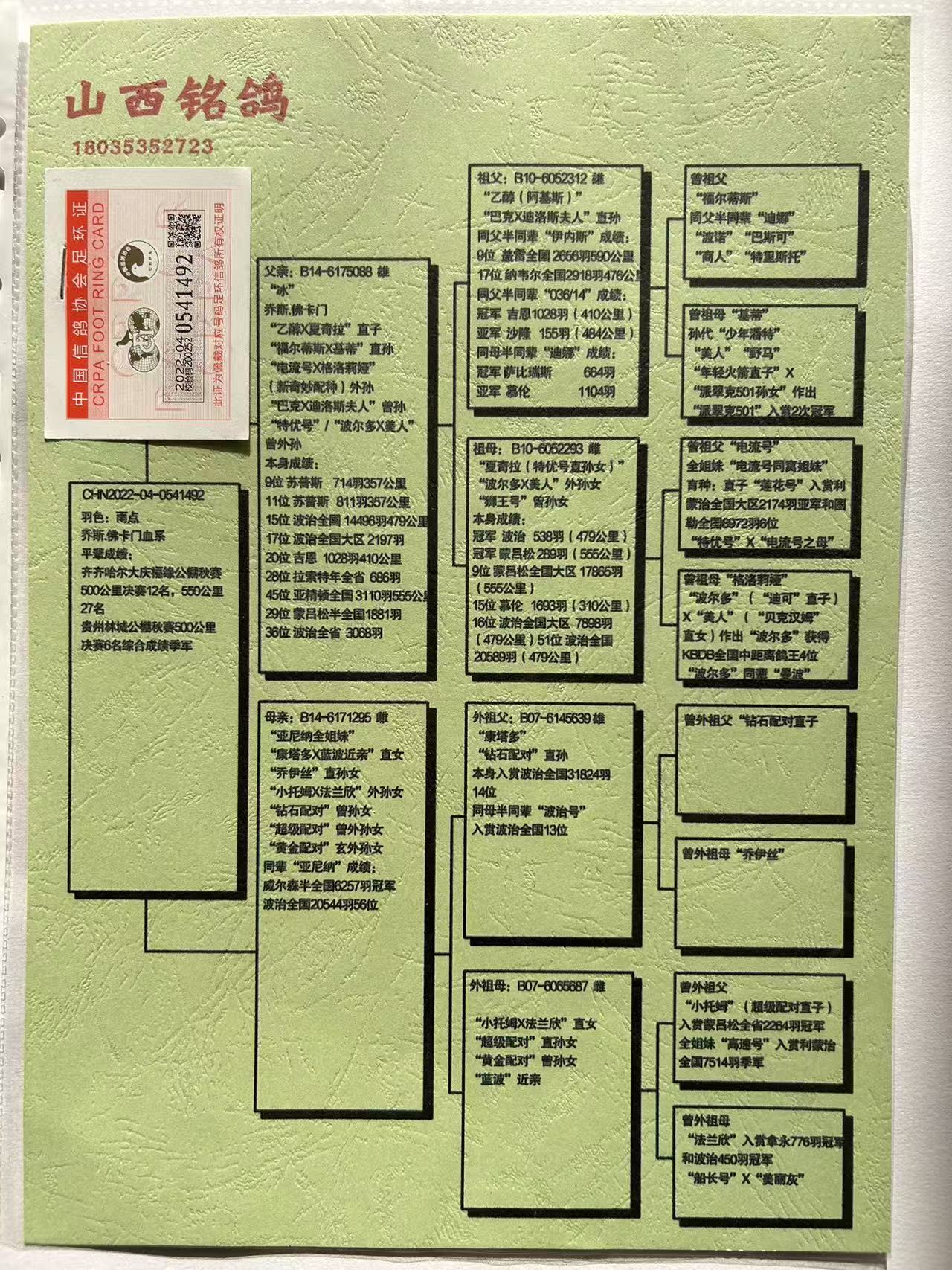- 當(dāng)前查看拍賣鴿:喬司.佛卡門血系