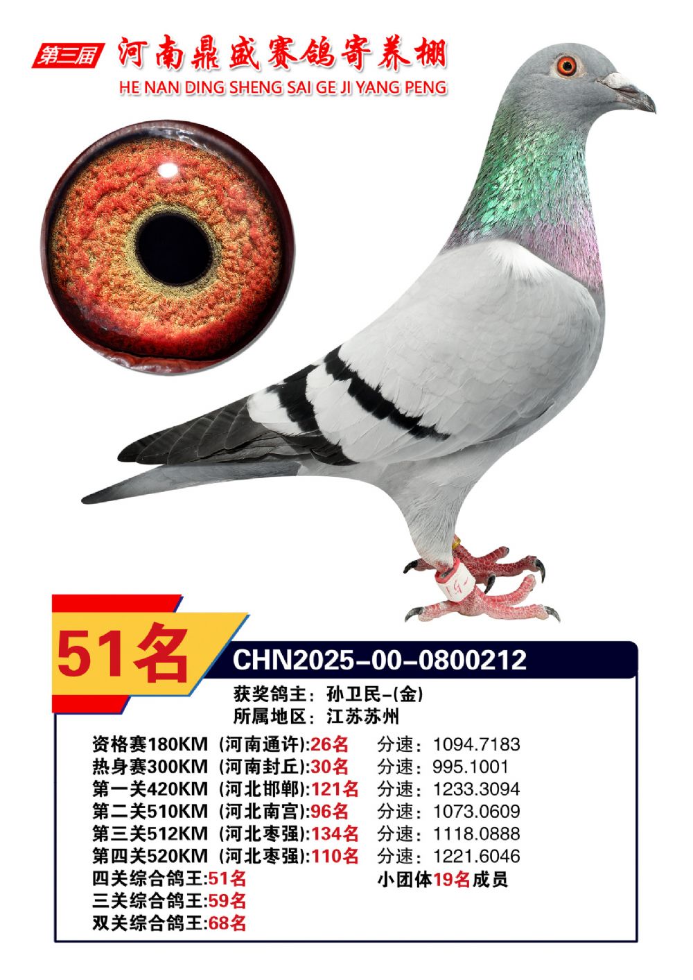 2025河南鼎盛四關賽四關綜合鴿王51名