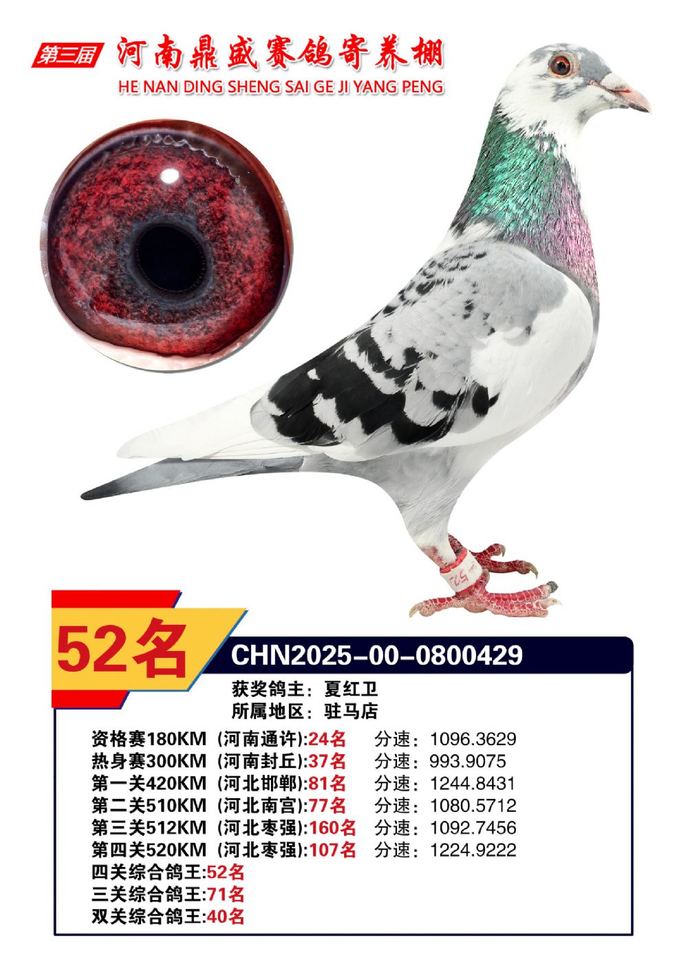 2025河南鼎盛四關(guān)賽四關(guān)綜合鴿王52名