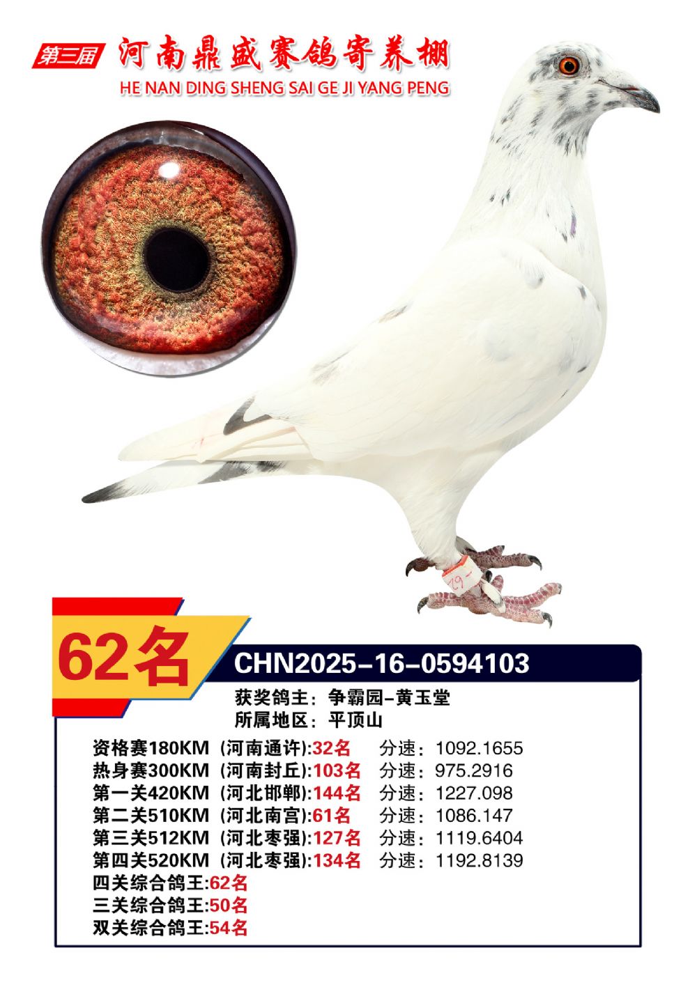 2025河南鼎盛四關(guān)賽四關(guān)綜合鴿王62名