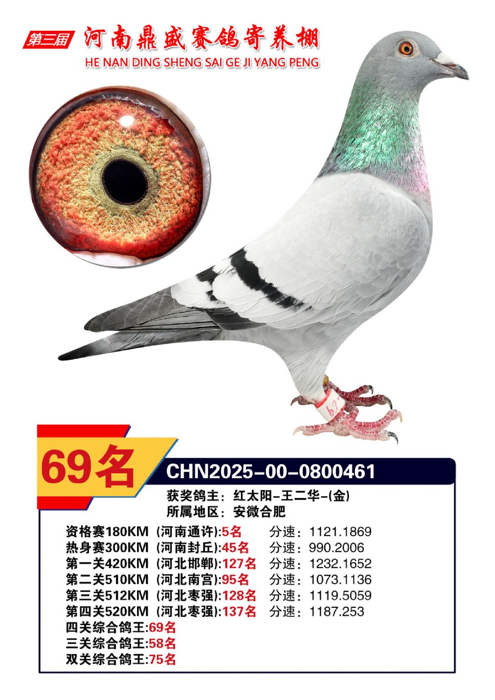 2025河南鼎盛四關賽四關綜合鴿王69名