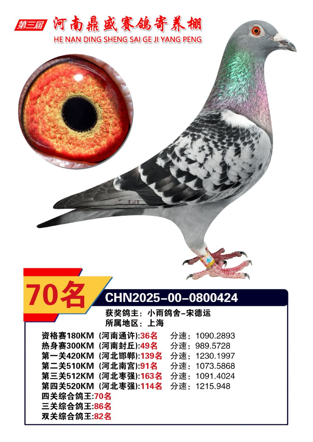 2025河南鼎盛四關(guān)賽四關(guān)綜合鴿王70名