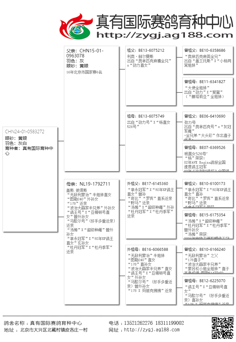 【在這三座金礦還未被世人發(fā)現(xiàn)之前,真有國際就第一時間把高品質(zhì)的鴿子帶到了國內(nèi),取得了空前的發(fā)揮。近幾年大家才逐漸認(rèn)識這幾位大師鴿子的魅力。請記!當(dāng)任何商業(yè)鴿舍進(jìn)入炒作后期的時候,他的鴿子質(zhì)量與價值都會急劇下降,即便是詹森兄弟也難免于此。所以引進(jìn)這家鴿舍最巔峰時期的鴿子,得以延續(xù),才是真有國際成功的致勝法寶。】