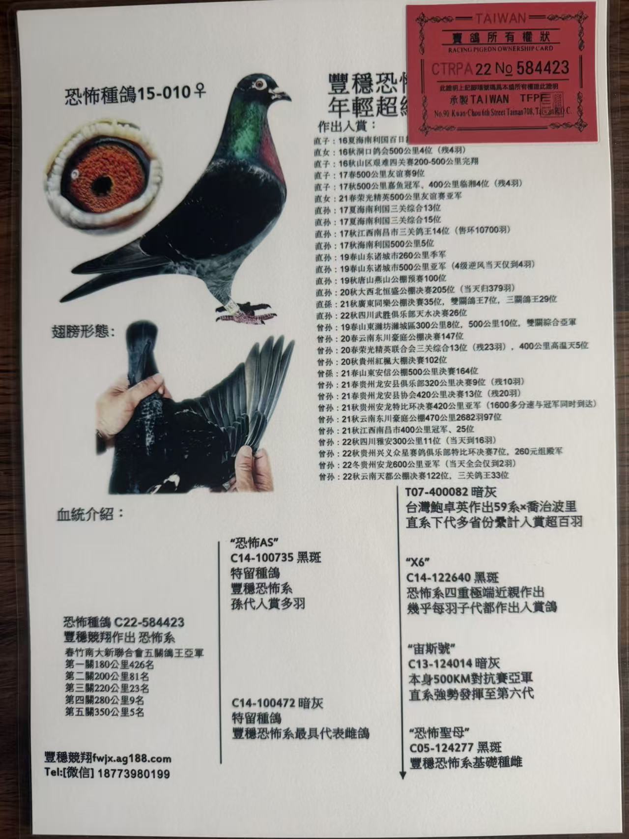 - 當(dāng)前查看拍賣鴿:臺灣“恐怖系”本身榮獲五關(guān)鴿王亞軍