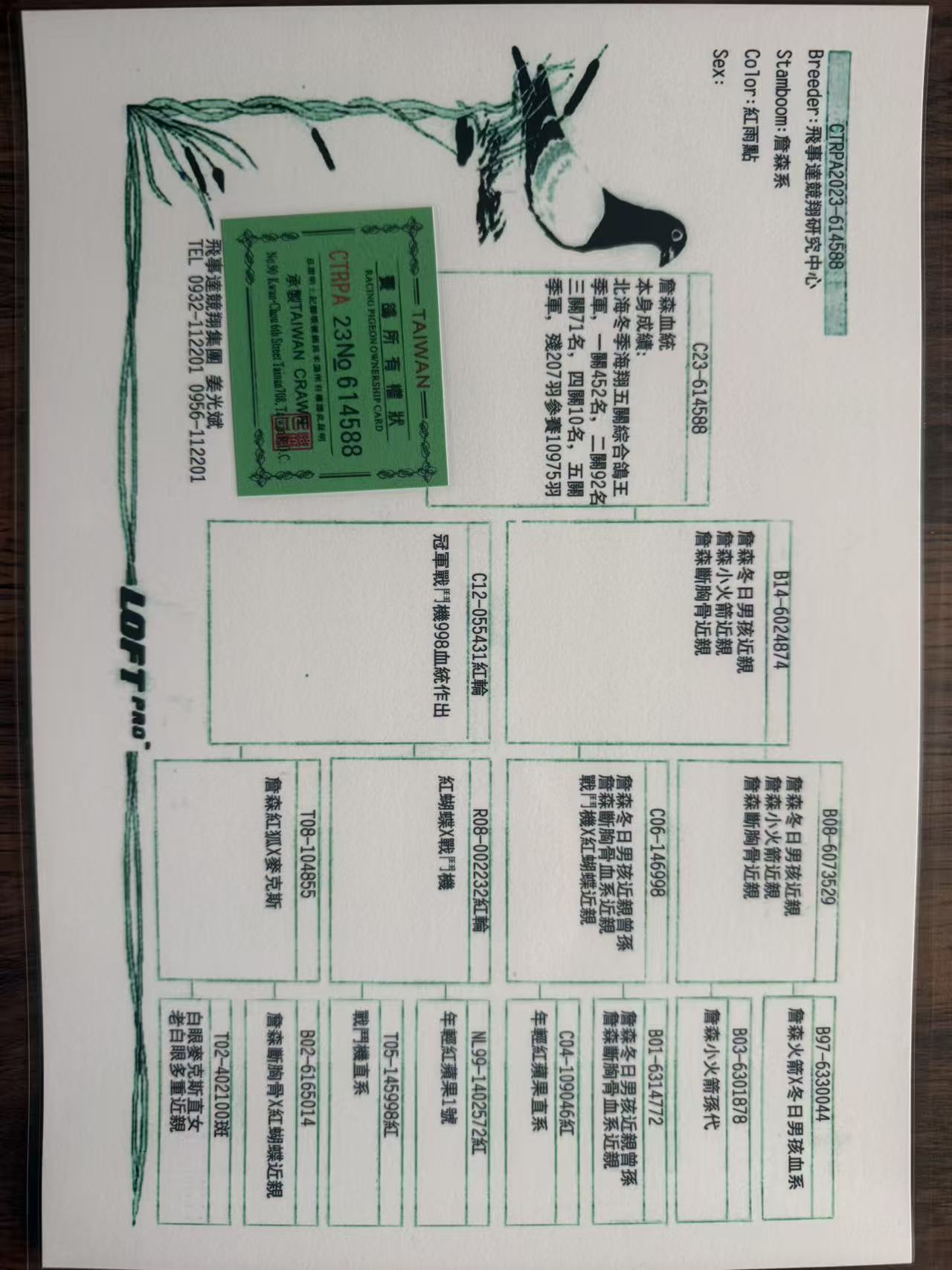 - 當(dāng)前查看拍賣鴿:臺(tái)灣飛事速翔研究中心”詹森“本身五關(guān)鴿王