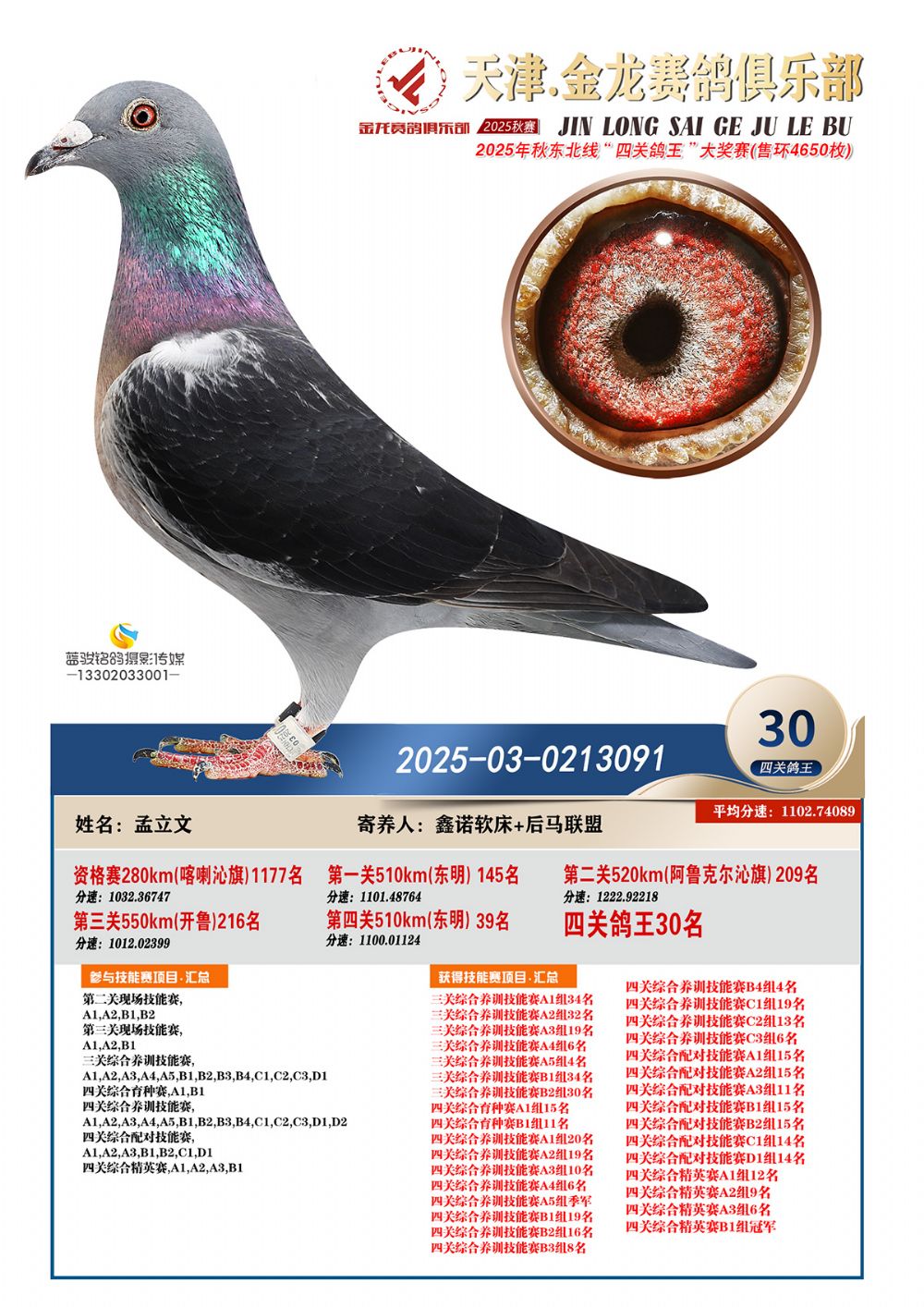 | 1604341 | 天津金龍鴿王58名 | ¥1000元 | 0次 |