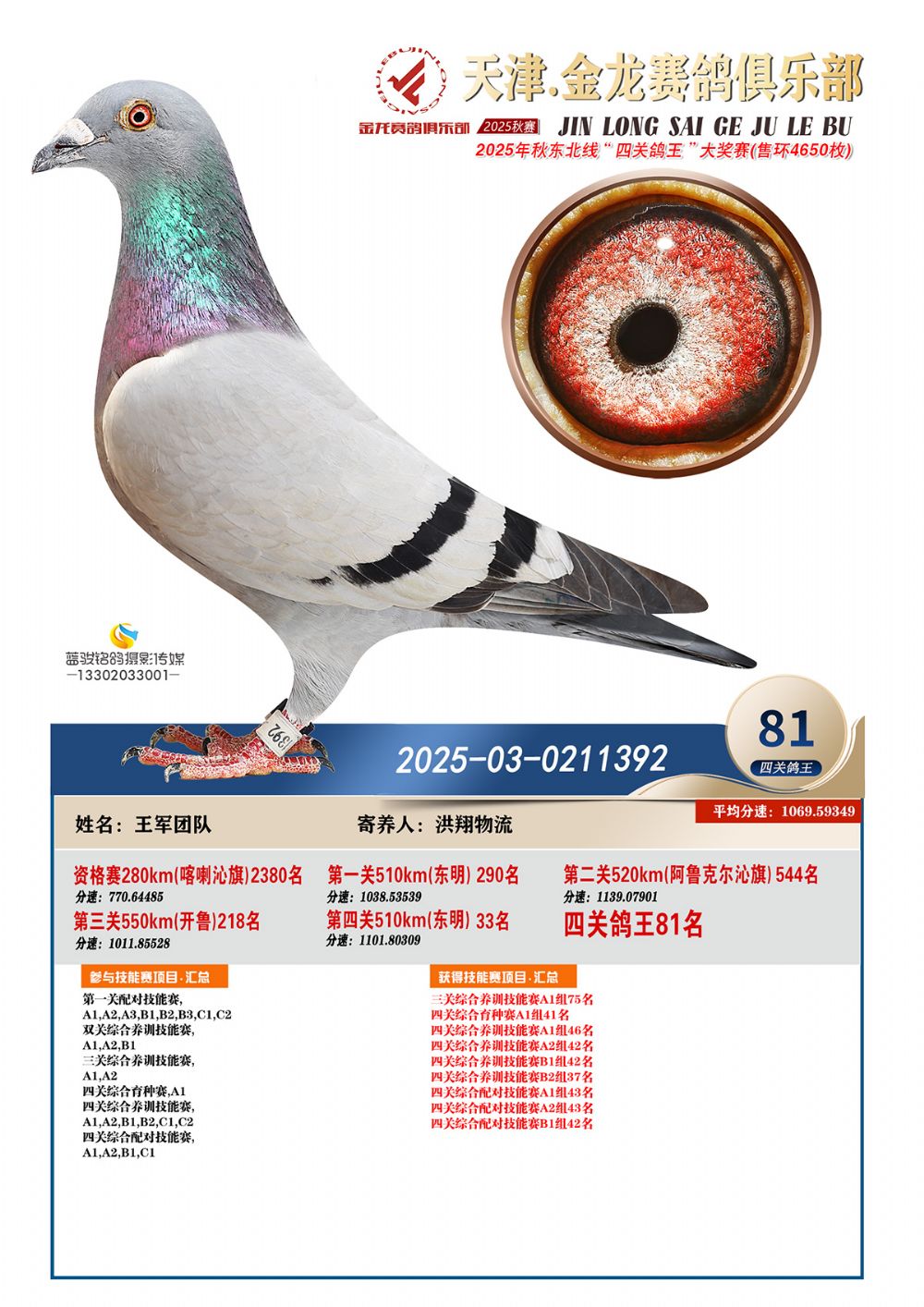 天津金龍鴿王81名