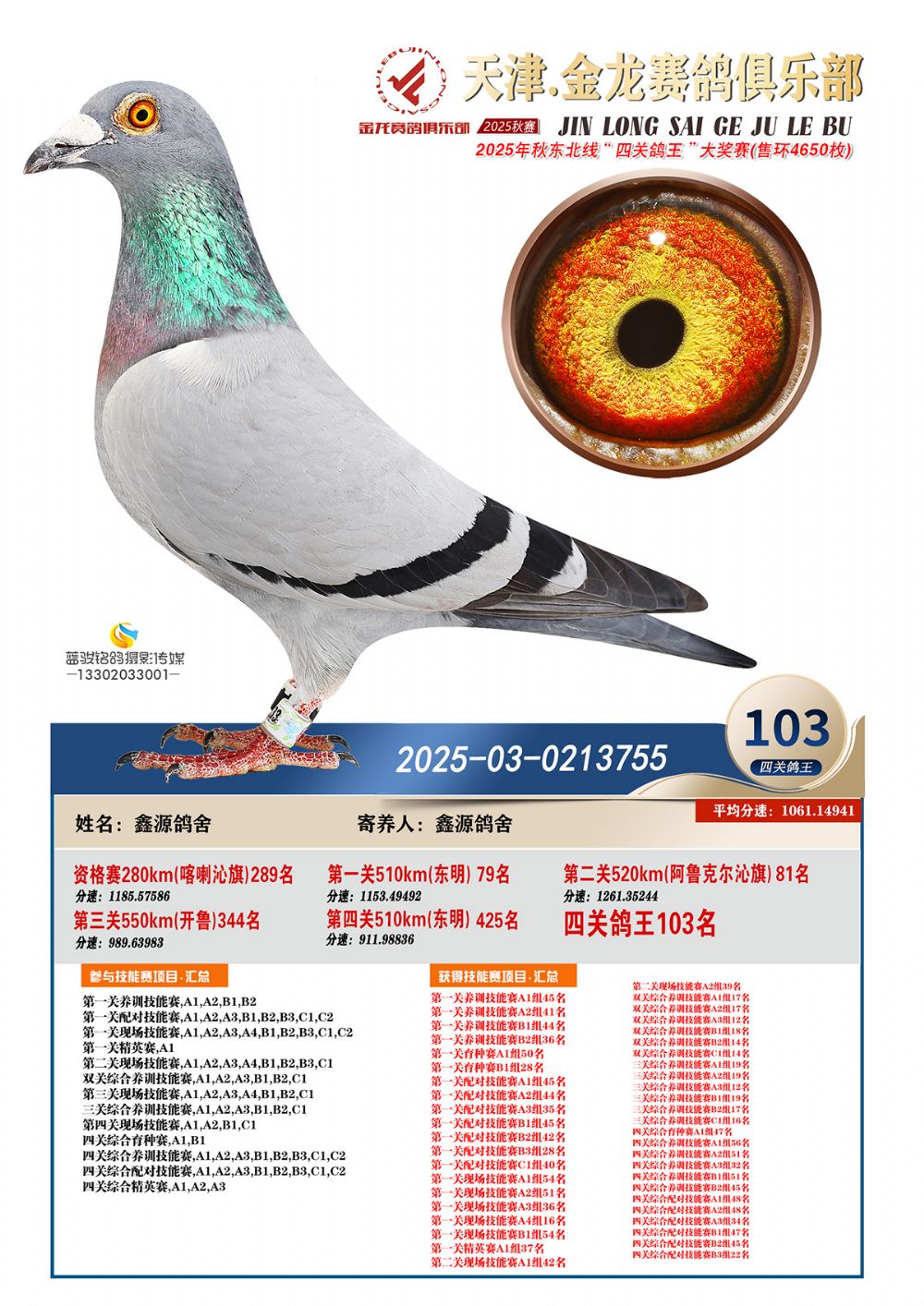| 1604370 | 天津金龍鴿王87名 | ¥1000元 | 0次 |
