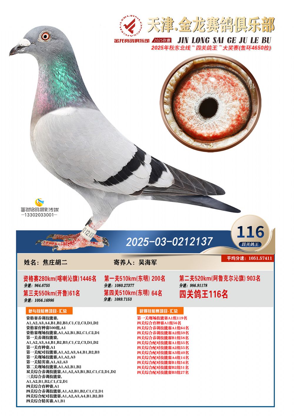 | 1604365 | 天津金龍鴿王82名 | ¥1000元 | 0次 |