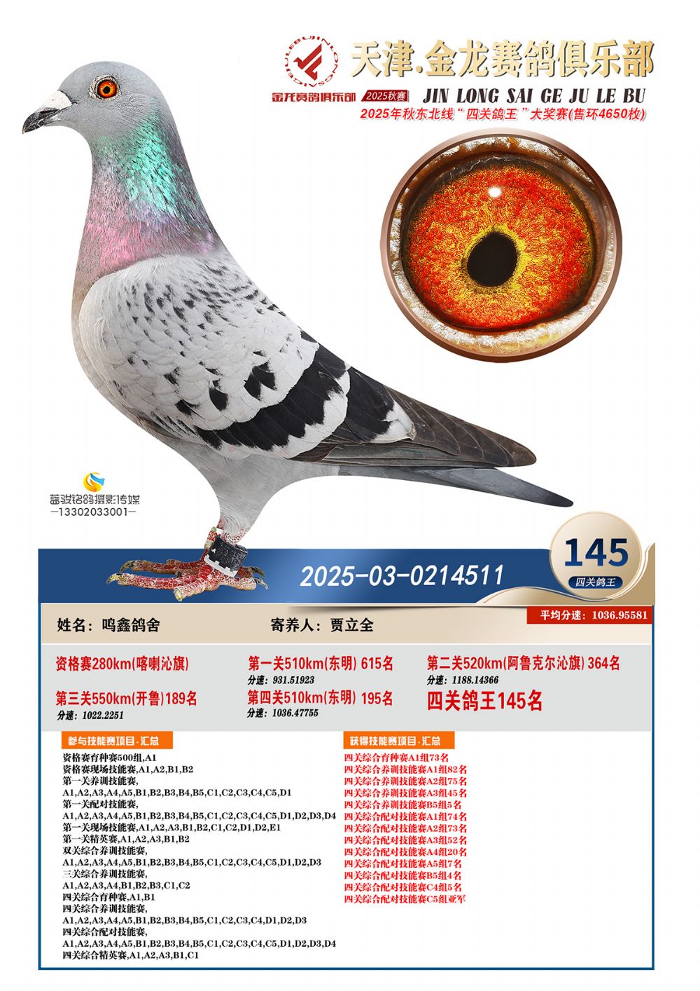 天津金龍鴿王145名