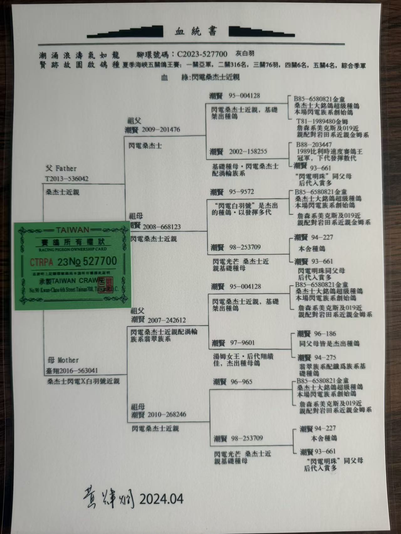 - 當(dāng)前查看拍賣鴿:臺灣黃肆烔作出”桑杰士近親“本身榮獲五關(guān)