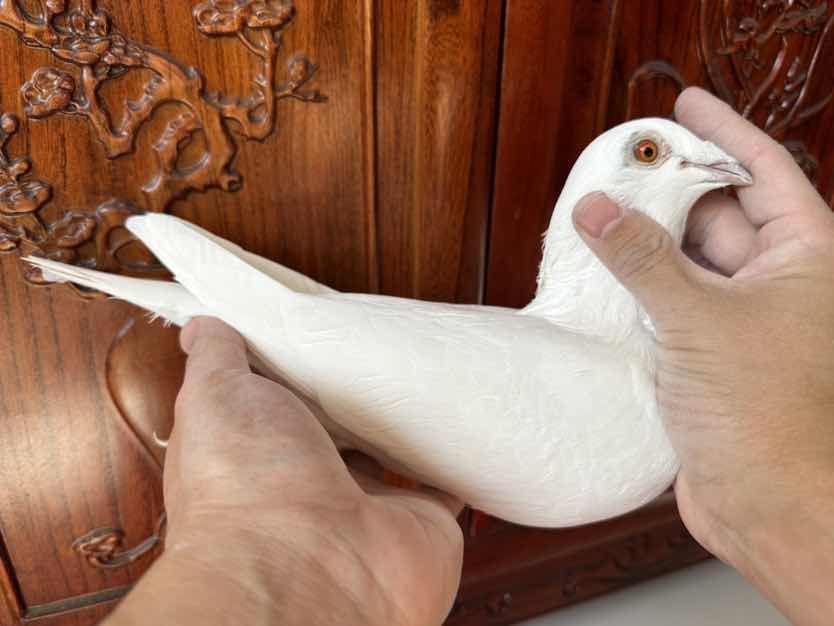 此鴿也是家族唯一一羽純白色返祖遺傳優(yōu)秀此鴿