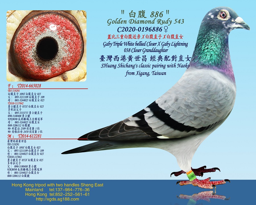 廣東順德鴿友馮有堅(jiān)先生使翔蓋比白腹號(hào)鴿系在奪國(guó)家賽順德佛山廣州三區(qū)總亞軍