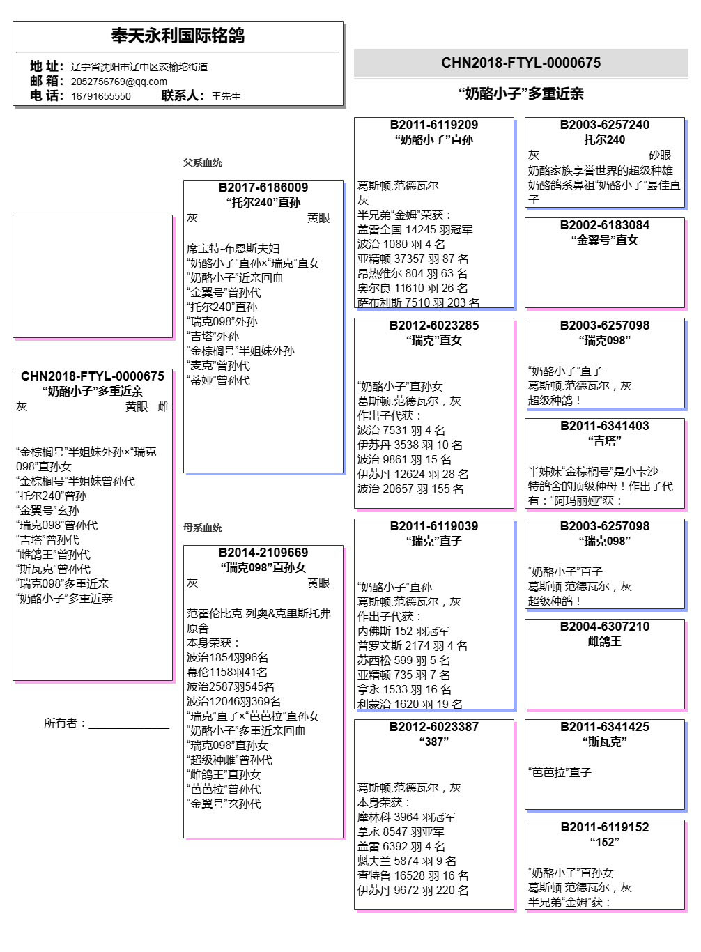 “雌鴿王”曾孫代