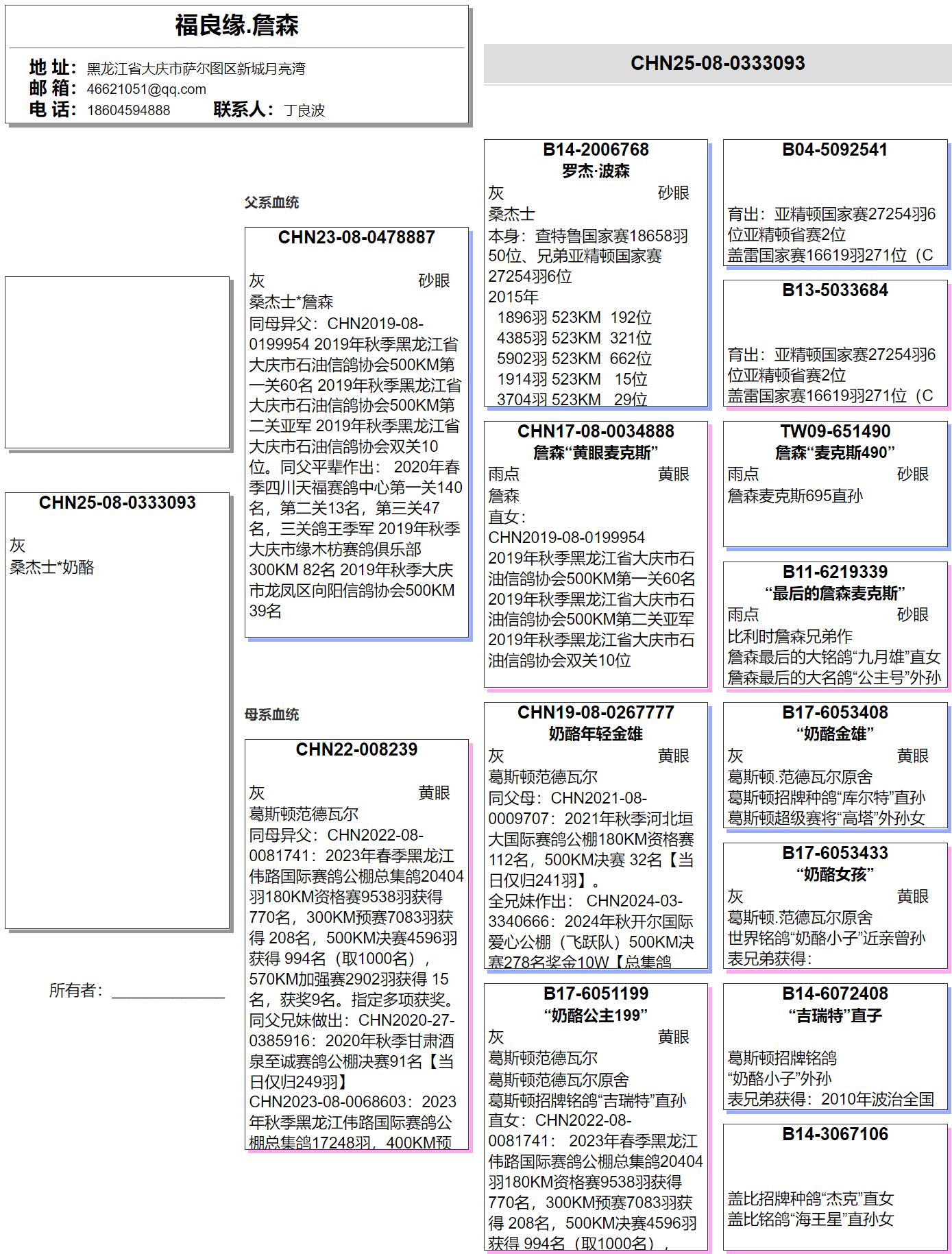 外祖母:“奶酪公主199”B17-6051199 奶酪小子近親曾孫