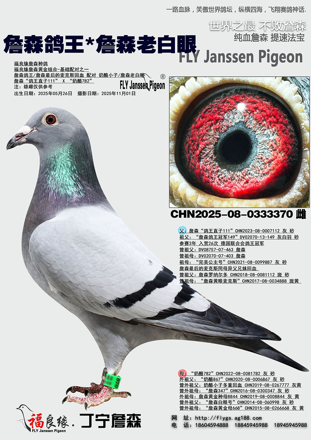 - 血統(tǒng):詹森鴿王*奶酪小子/詹森老白眼