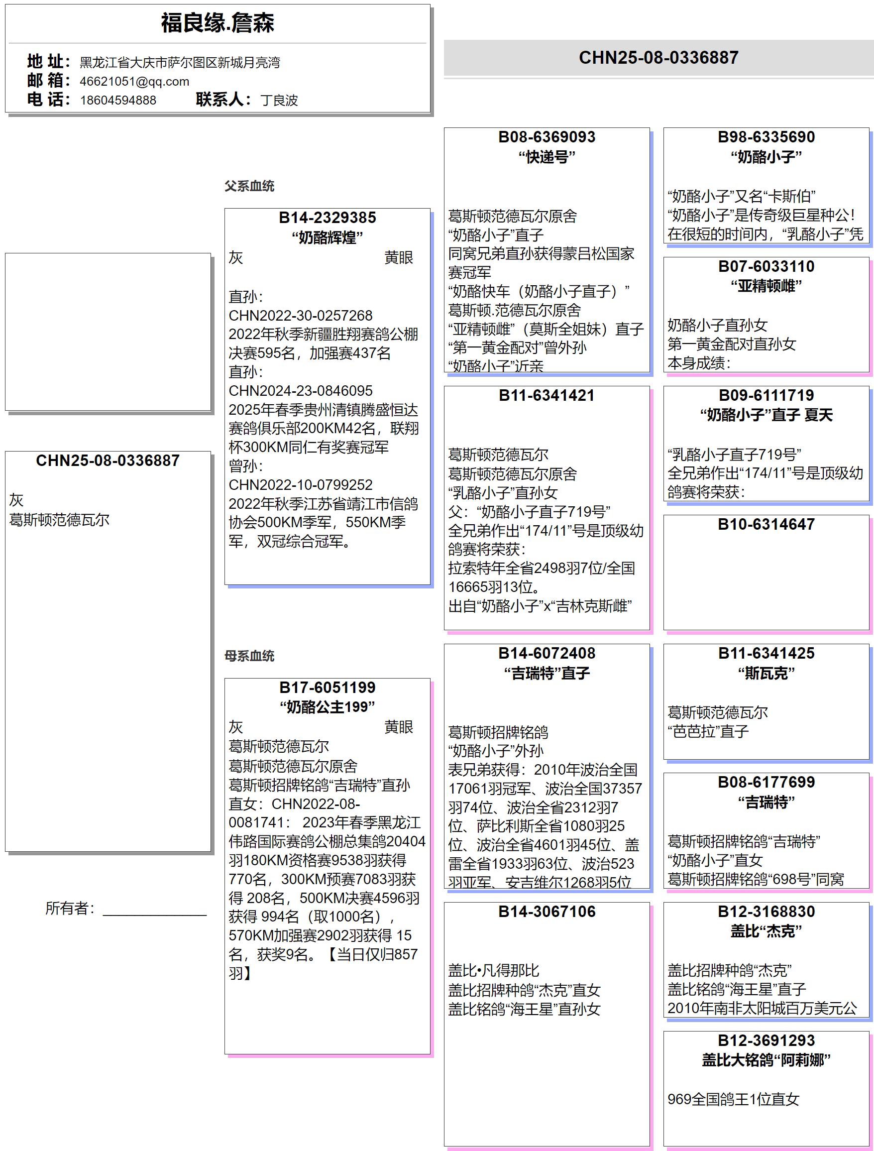 曾外祖母:B08-6177699 葛斯頓招牌銘鴿“吉瑞特”