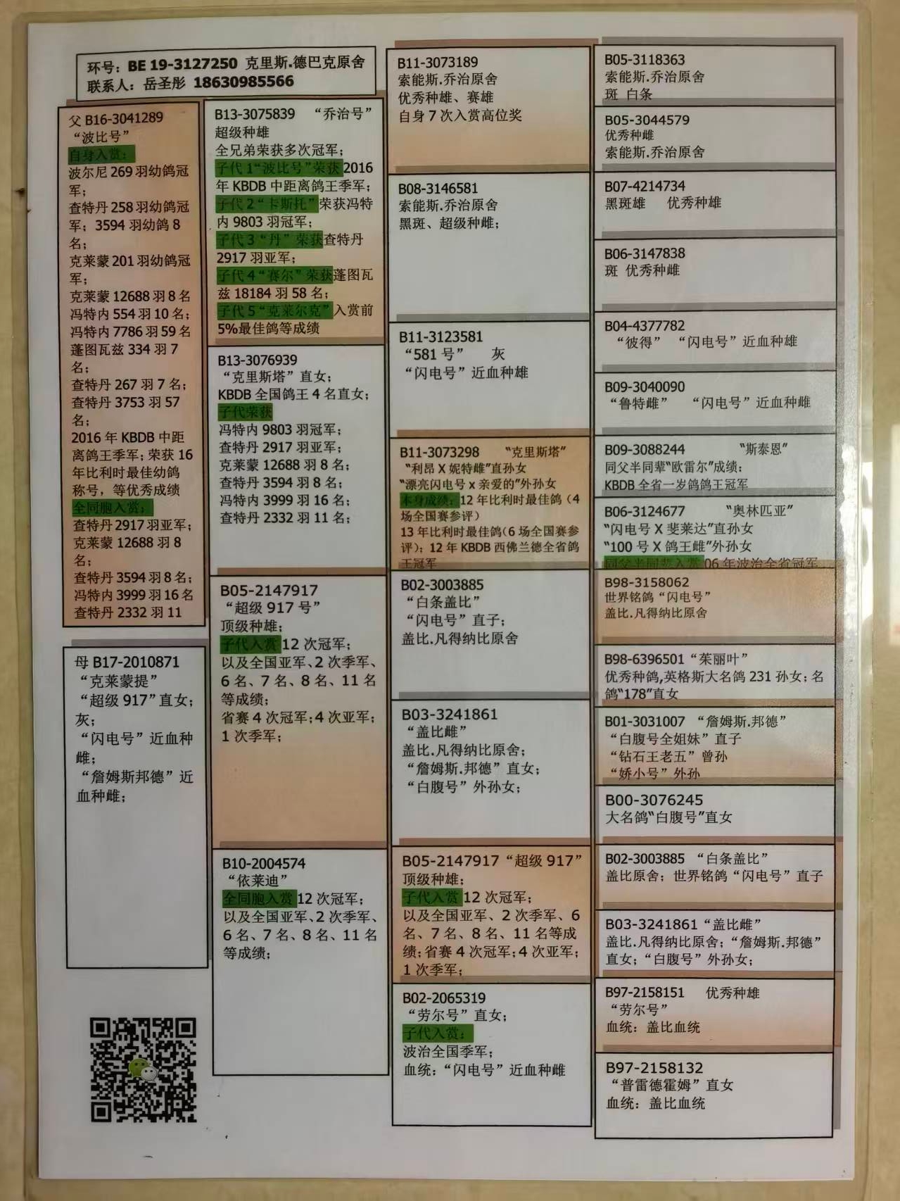 注明:5年以上的老鴿子更換環(huán)境有可能造成不能作育,請你謹(jǐn)慎出價