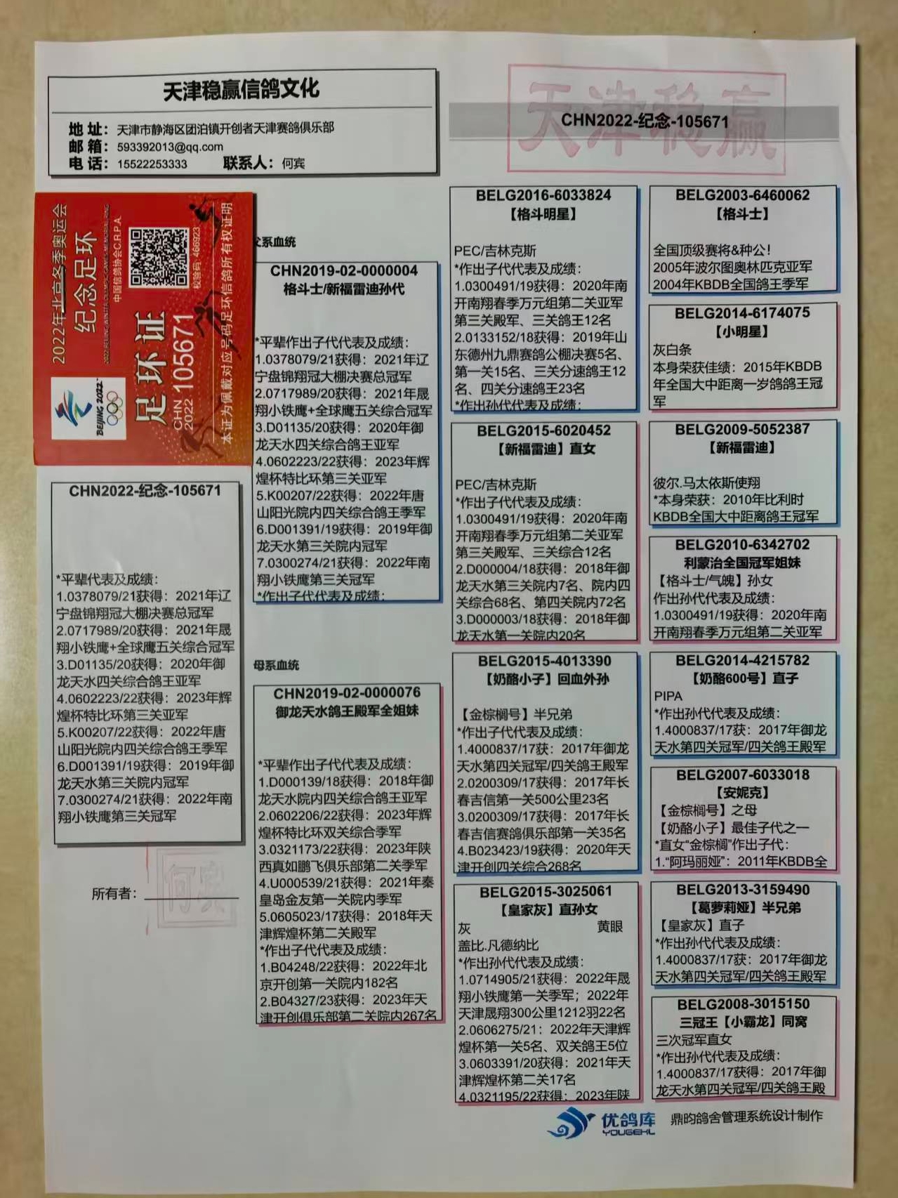 注明:5年以上的老鴿子更換環(huán)境有可能造成不能作育,請(qǐng)你謹(jǐn)慎出價(jià)