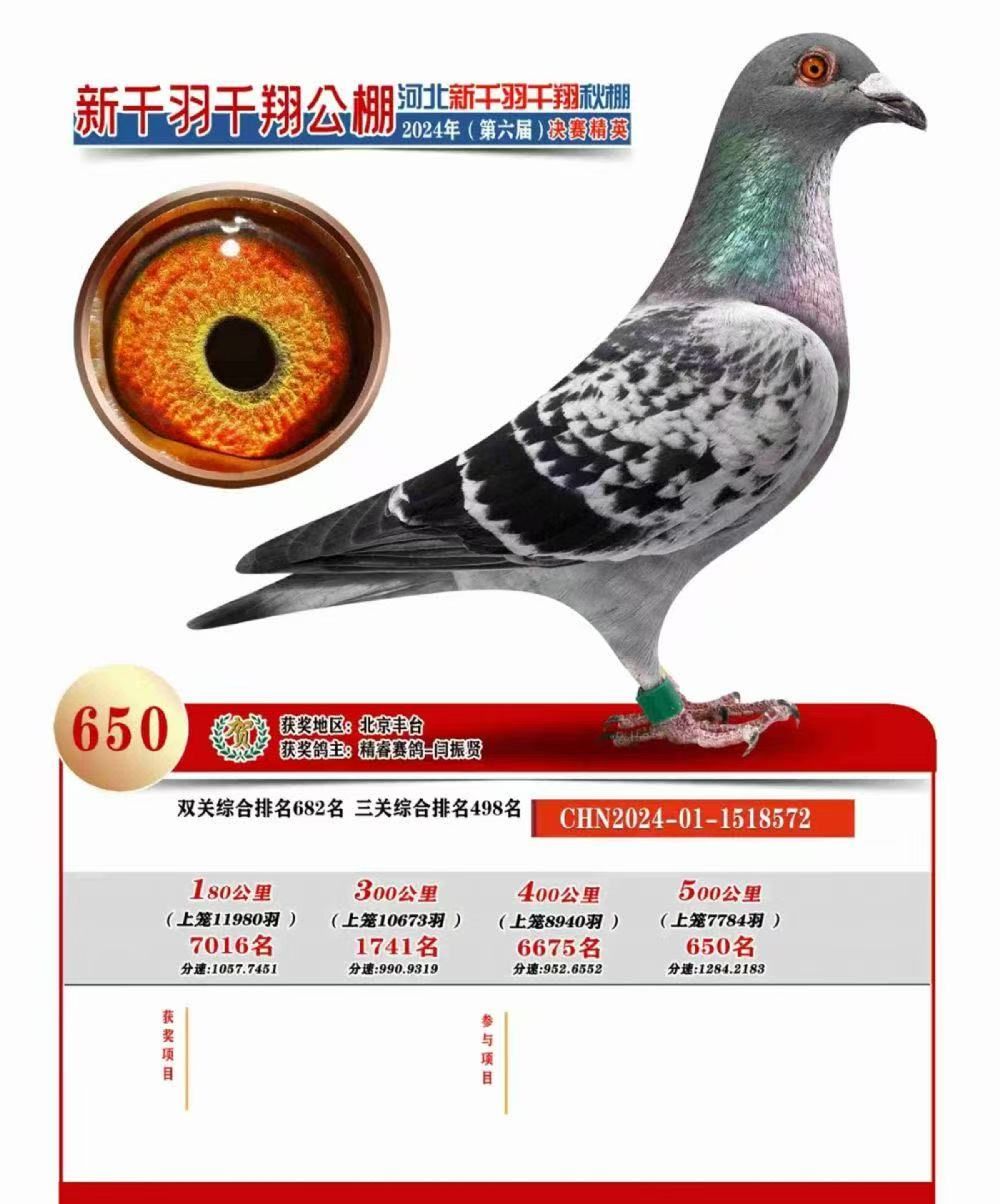 張家口新千羽千翔賽鴿公棚500公里總決賽650名;