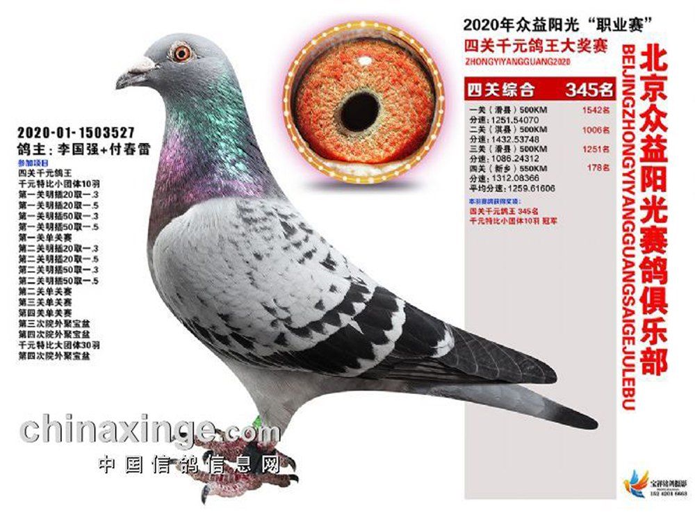 北京眾益陽(yáng)光賽鴿俱樂(lè)部千元特比環(huán)第三關(guān)500公里1251名;