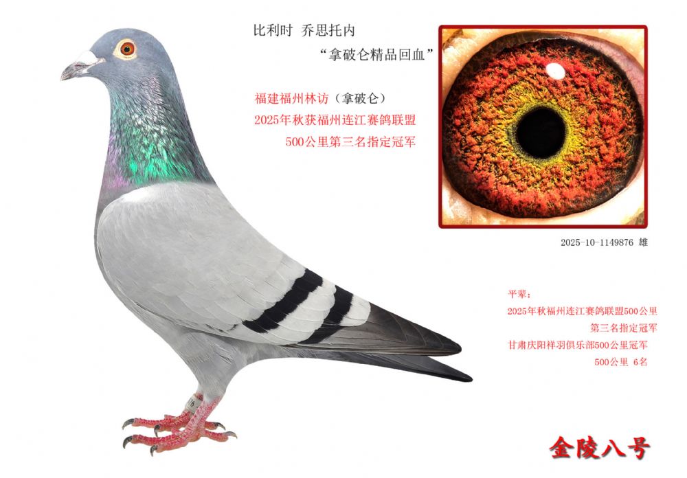 福建福州林訪2025年秋獲福州連江賽鴿聯(lián)盟500公里第三名指定冠軍(拿破侖)