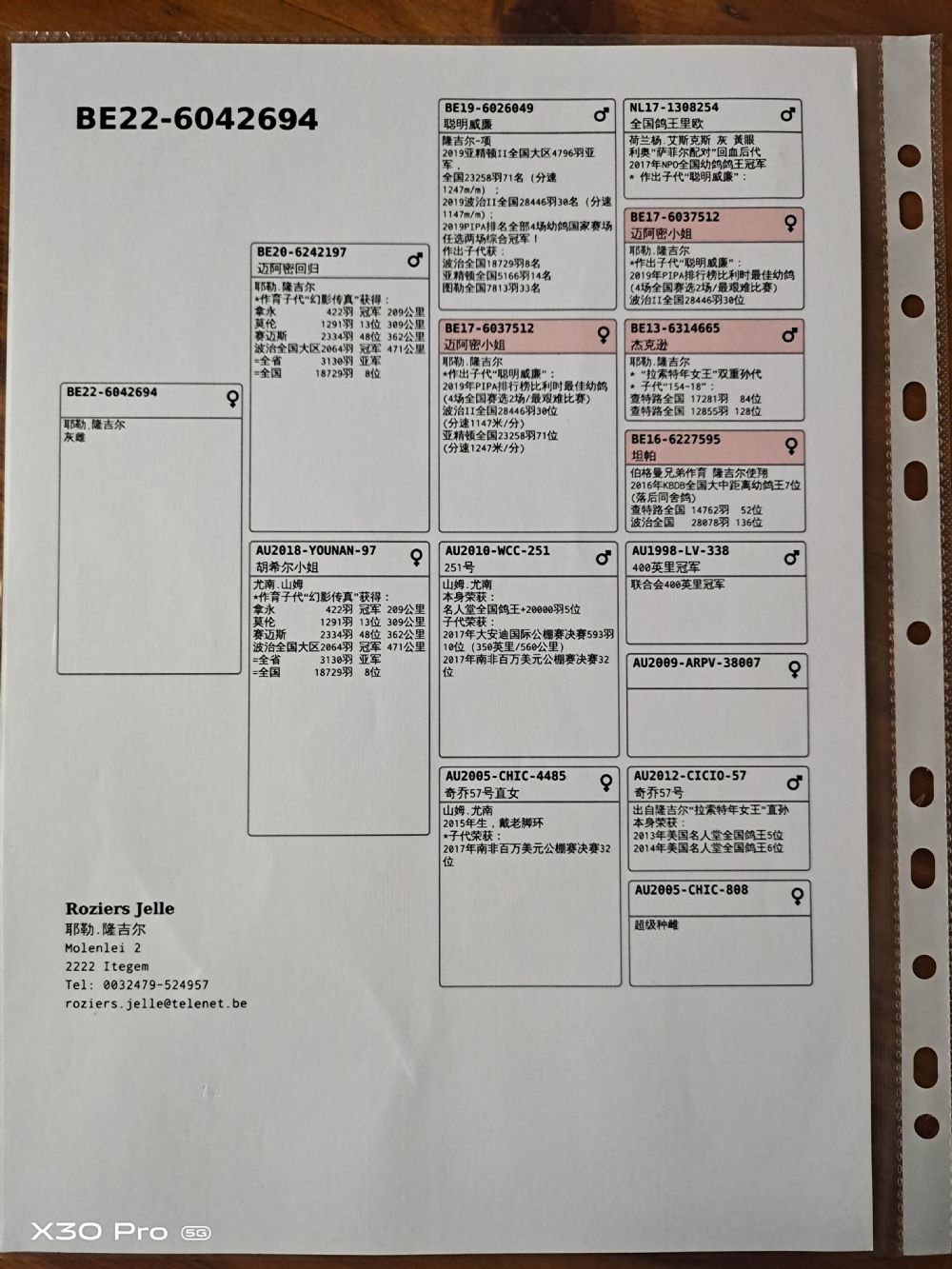 晟捷國際鴿業(yè):鴿主養(yǎng)鴿30余載,引進世界銘鴿,公棚鴿王,地方賽鴿王,前名次鴿多羽。鴿舍主血:利奧賀爾曼斯,楊胡曼斯哈利,奶酪,胡本,克拉克,詹森紅狐,麥克斯,51次,019,桑杰士,馬克羅森斯,戈馬力,速霸龍,東方不敗,喬斯佛卡門,小迪迪,,甘納斯,芬妮卡5000 晟捷國際鴿業(yè):代表成績:2009年獲得惠翔3名,團體冠軍, 2006年大鵝島公棚預(yù)賽21名,決賽84名。 2007年盛世公棚500公里決賽182名296名425名。 2008年盛世公棚500公里決賽61名,276名。 2009年獲得千山公棚決賽9名,鴿王10名.... 2011年獲得祺陽牧業(yè)決賽17名37名243名,團體5名。 2014年獲得丹東祺陽牧業(yè)決賽138名 2015年海逸國際公棚393名鴿王11名 2016年北戴河六藝國際公棚預(yù)賽26名,決賽51名。 藍湖欲鴿決賽73名,精英賽冠軍。 2017年大安信和公棚決賽233名300名414名。 北戴河六藝國際公棚預(yù)賽151名決賽145名 2018年春潮公棚決賽195名,376名 2019年綏中縱誠公棚500公里決賽59名 大慶臻翔公棚500公里決賽43名 海逸國際公棚四關(guān)鴿王13名 。