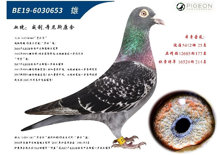 晟捷國際鴿業(yè):鴿主養(yǎng)鴿30余載,引進(jìn)世界銘鴿,公棚鴿王,地方賽鴿王,前名次鴿多羽。鴿舍主血:利奧賀爾曼斯,楊胡曼斯哈利,奶酪,胡本,克拉克,詹森紅狐,麥克斯,51次,019,桑杰士,馬克羅森斯,戈馬力,速霸龍,東方不敗,喬斯佛卡門,小迪迪,,甘納斯,芬妮卡5000 晟捷國際鴿業(yè):代表成績:2009年獲得惠翔3名,團(tuán)體冠軍, 2006年大鵝島公棚預(yù)賽21名,決賽84名。 2007年盛世公棚500公里決賽182名296名425名。 2008年盛世公棚500公里決賽61名,276名。 2009年獲得千山公棚決賽9名,鴿王10名.... 2011年獲得祺陽牧業(yè)決賽17名37名243名,團(tuán)體5名。 2014年獲得丹東祺陽牧業(yè)決賽138名 2015年海逸國際公棚393名鴿王11名 2016年北戴河六藝國際公棚預(yù)賽26名,決賽51名。 藍(lán)湖欲鴿決賽73名,精英賽冠軍。 2017年大安信和公棚決賽233名300名414名。 北戴河六藝國際公棚預(yù)賽151名決賽145名 2018年春潮公棚決賽195名,376名 2019年綏中縱誠公棚500公里決賽59名 大慶臻翔公棚500公里決賽43名 海逸國際公棚四關(guān)鴿王13名 。