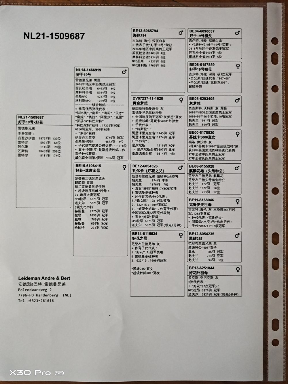 晟捷國(guó)際鴿業(yè):鴿主養(yǎng)鴿30余載,引進(jìn)世界銘鴿,公棚鴿王,地方賽鴿王,前名次鴿多羽。鴿舍主血:利奧賀爾曼斯,楊胡曼斯哈利,奶酪,胡本,克拉克,詹森紅狐,麥克斯,51次,019,桑杰士,馬克羅森斯,戈馬力,速霸龍,東方不敗,喬斯佛卡門(mén),小迪迪,,甘納斯,芬妮卡5000 晟捷國(guó)際鴿業(yè):代表成績(jī):2009年獲得惠翔3名,團(tuán)體冠軍, 2006年大鵝島公棚預(yù)賽21名,決賽84名。 2007年盛世公棚500公里決賽182名296名425名。 2008年盛世公棚500公里決賽61名,276名。 2009年獲得千山公棚決賽9名,鴿王10名.... 2011年獲得祺陽(yáng)牧業(yè)決賽17名37名243名,團(tuán)體5名。 2014年獲得丹東祺陽(yáng)牧業(yè)決賽138名 2015年海逸國(guó)際公棚393名鴿王11名 2016年北戴河六藝國(guó)際公棚預(yù)賽26名,決賽51名。 藍(lán)湖欲鴿決賽73名,精英賽冠軍。 2017年大安信和公棚決賽233名300名414名。 北戴河六藝國(guó)際公棚預(yù)賽151名決賽145名 2018年春潮公棚決賽195名,376名 2019年綏中縱誠(chéng)公棚500公里決賽59名 大慶臻翔公棚500公里決賽43名 海逸國(guó)際公棚四關(guān)鴿王13名 。