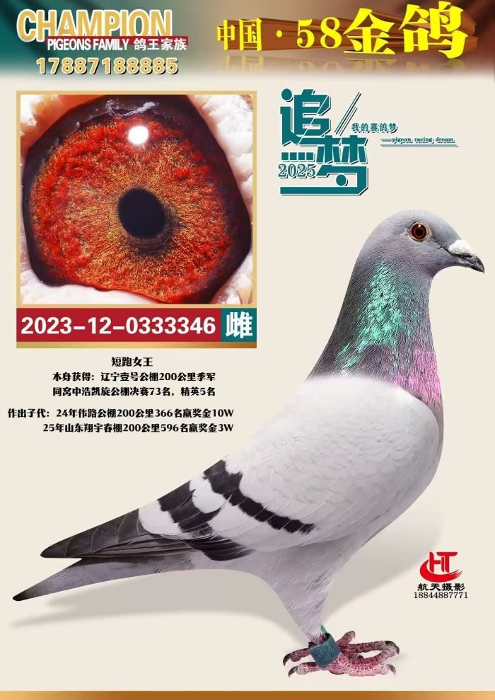 短跑女王,本身遼寧壹號公棚200公里季軍,做出子代200公里,300公里贏獎20W,今年子代比賽中,,,,,