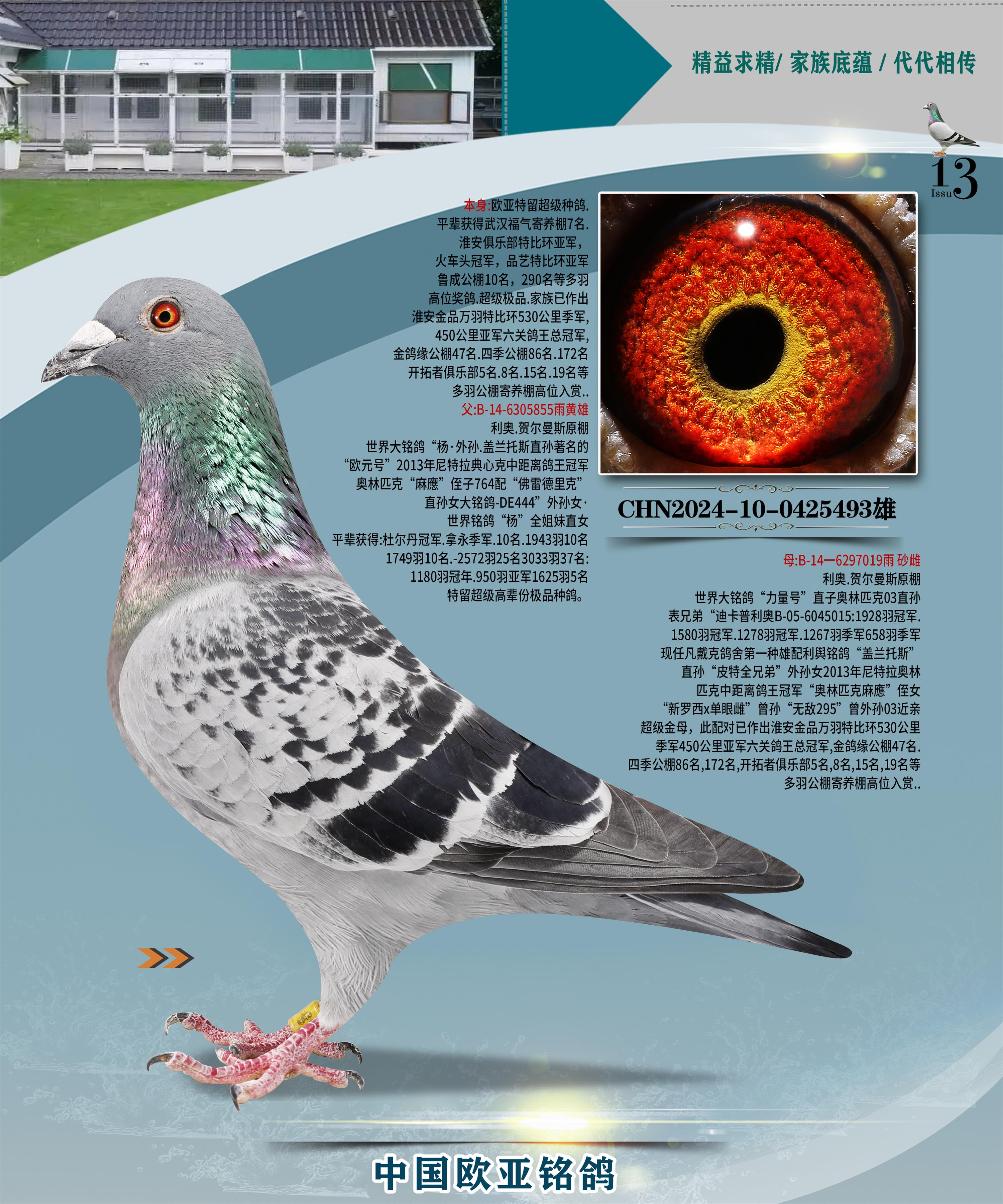 24年秋南京特比環(huán)歐亞榮獲大團體冠軍.小團體冠軍551公里大特比13名.14名.16名.19名.20名.21名.24名.26名.27名.28名.42名.52名.54名.57名.65名.66名.68名.70名.71名.72名.74名.76名.80名.82名.83名.84名.85名.86名.90名.92名.110名.116名.121名.122名.128名.131名.158名.161名.164名.165名.166名.172名.174名.177名.182名.195名.196名.201名.205名.208名.210名.216名.253名.269名.275名.276名.294名.296名.299名,,24年秋云南天南銅都公棚決賽415名.天南銅都小棚決賽409名.云南玉活公棚決賽102名.490名.團體32名上籠二羽進二羽,天南銅都大棚506公里決賽445名。熱烈祝賀河北省巨鹿縣李蘭生老師用歐亞泰山號血系連續(xù)十一年奪冠軍,河北省國家賽冠軍.全國季軍等多次前十名高位,揚州王軍王總用歐亞利奧24年春季獲山東翔宇公棚決賽33名蓋比53名。南京劉正龍劉總用歐亞蓋比獲得24年秋山東濰坊國際公棚決賽42名.精英賽30名.三關(guān)鴿王71名.決賽86名.加站賽16名.南京市特比環(huán)A組鴿王9名.B組鴿王5名.6名.C組鴿王5名.精英賽冠軍4名.技能賽A組冠軍4名.5名.秦淮區(qū)特比環(huán)榮獲15名.46名.48名.87名。四川西昌徐亮徐總用歐亞利奧獲得涼山州聚友決賽177名.第二關(guān)亞軍雙關(guān)鴿王19名.三關(guān)鴿王105名.云南豪庭公棚決賽603名。熱烈祝賀24年四川重慶翔園鴿舍用歐亞泰山號榮獲春季400公里冠軍.秋季500公里冠軍,河北王總用詹森X利奧獲得千羽千翔公棚400公里冠軍,廣東蔡楷煥榮獲24年秋愛好者 賽鴿俱樂部三關(guān)鴿王季軍.一關(guān)420公里99名.二關(guān)450公里11名.三關(guān)520公里32名.單關(guān)季軍.7名.12名,江西李衛(wèi)興榮獲貴州紅楓公棚8名.共翔俱樂部寄養(yǎng)棚四關(guān)綜合鴿王30名.一關(guān)400公里78名.二關(guān)500公里55名.三關(guān)520公里37名.四關(guān)500公里57名.同父母獲公棚18名.雷鳴獲得武漢黃浦育翔中心冠軍,四川陳文獲得四川明鴻俱樂部300公里夢幻2名.3名.4名.9名.10名.13名.14名.15名.31名.34名.40名.41名.42名.43名.69名.71名.72名.73名.74名.94名.95名.97名.98名.99名.419公里決賽榮獲總冠軍7名.總共歸巢9羽,四川徐亮獲豪庭決賽603名,山西鄭勇獲得山西泰鑫公棚決賽255名詹森紅狐,熱烈祝賀馬總獲得開爾(飛躍隊)決賽9名獲獎金1310000萬元.第一關(guān)52名,天津津福資賽180公里96名.獲獎金429543萬元,歐亞支持全國鴿友24年秋多人報喜 祝大家取得更好成績,給歐亞報喜鴿友歐亞決定給每人贈送一羽超級種鴿。歐亞俱樂部特比環(huán)多關(guān)鴿王成績:15年秋淮安特比環(huán)黑色星期一全會上籠9700多羽,當(dāng)天無鴿歸巢,第二天全會歸巢357羽,本舍歸巢158羽.前十名八羽.前一百名歸巢57羽,16年春季獲五關(guān)鴿王總冠軍,總亞軍四名.六名.七名.九名.十名.晶藝俱樂部520公里冠亞季軍5名.6名.7名.9名.11名等,火車頭冠軍.季軍6名.8名.9名.10名,16年秋晶藝俱樂部特比環(huán)520公里亞軍.季軍4名.6名.7名.9名,15年春南京白下特比環(huán)冠軍.亞軍.季軍6名.7名.8名.9名.10名.指定鴿A B組獲得冠軍.亞軍.季軍4名.5名.,17年淮安特比環(huán)亞軍.4名.5名.7名.8名.10名.六關(guān)鴿王總冠軍.4名.6名.9名.10名,寄養(yǎng)棚宿遷劉總20羽特比環(huán)獲冠軍.季軍.4名.7名.8名.9名等。18年榮獲萬羽特比環(huán)六關(guān)鴿王總冠軍.總亞軍.總季軍.6名.8名.十名.單關(guān)四羽冠軍.二羽亞軍.四羽季軍.前十名27羽。19年秋萬羽特比環(huán)六關(guān)鴿王總亞軍.總季軍.5名.8名等,單關(guān)二羽冠軍.三羽亞軍.一羽季軍前十名31羽。20年秋淮安市鴿會四關(guān)特比環(huán)大賽風(fēng)雨無阻鴿王亞軍.鴿王六名,金品俱樂部萬羽特比環(huán)六關(guān)鴿王總冠軍,總亞軍.四名.五名.六名.七名.八名.十名.前二百名鴿王35羽,單關(guān)冠亞季軍前十名四十多羽,火車頭五關(guān)鴿王季軍.六名.八名.前二百名鴿王十七羽。20年春榮獲淮安五區(qū)一市四關(guān)鴿王總冠軍.亞軍.四名.八名.九名。21年秋榮獲金品萬羽特比環(huán)大賽六關(guān)鴿王總亞軍.總季軍.四名.七名.九名.十名.單關(guān)冠亞軍季軍前十名三十多羽;疖囶^協(xié)會鴿王六名.七名.十名.單關(guān)前十名十七羽。22年秋榮獲鴿王總冠軍.總亞軍.5名.7名.8名.9名.11名.單關(guān)冠亞季軍前十名三十多羽,第一關(guān)單關(guān)前二百名四十多羽,第二關(guān)前二百名三十多羽,第三關(guān)前二百名四十多羽,第四關(guān)前二百名四十多羽,第五關(guān)前一百名53羽。23年秋榮獲鴿王季軍.五名.八名.十名.13名.17名.20名.27名等多羽鴿王.單關(guān)前十名二十多羽。公棚.寄養(yǎng)棚部分成績:16年秋寧夏黃河公棚總冠軍電腦戈馬力指定通炮冠軍,17年送八羽參賽獲得鴿王八名進獎四名,支持韓總榮獲八名。支持鴿友榮獲寧夏中衛(wèi)公棚決賽總冠軍.精英賽冠軍,支持18年寧夏黃河公棚決賽冠軍詹森X泰山。安徽鼎博寄養(yǎng)棚院內(nèi)外四關(guān)鴿王總冠軍.鴿王十七名.三十七名同窩,鴿王39名.42名.58名.67名。18年山東公棚預(yù)賽冠軍.決賽65名.送八羽進獎五羽.指定獲奔馳汽車一輛。支持鴿友獲得云南藍云公棚冠軍.蓋比X佛卡門。支持鴿友榮獲云南銀集公棚決賽冠軍 詹森427X520血系 速度賽6700羽冠軍。17年榮獲金馬俱樂部寄養(yǎng)棚四關(guān)鴿王總冠軍.季軍.六名.八名.第一關(guān)冠軍.亞軍.季軍四名.七名.十一名.金牌教練獎。支持鴿友18年北京費翔公棚預(yù)賽九名電腦X