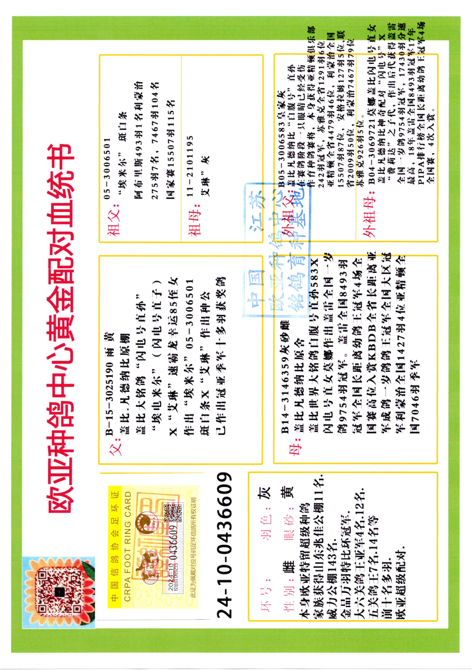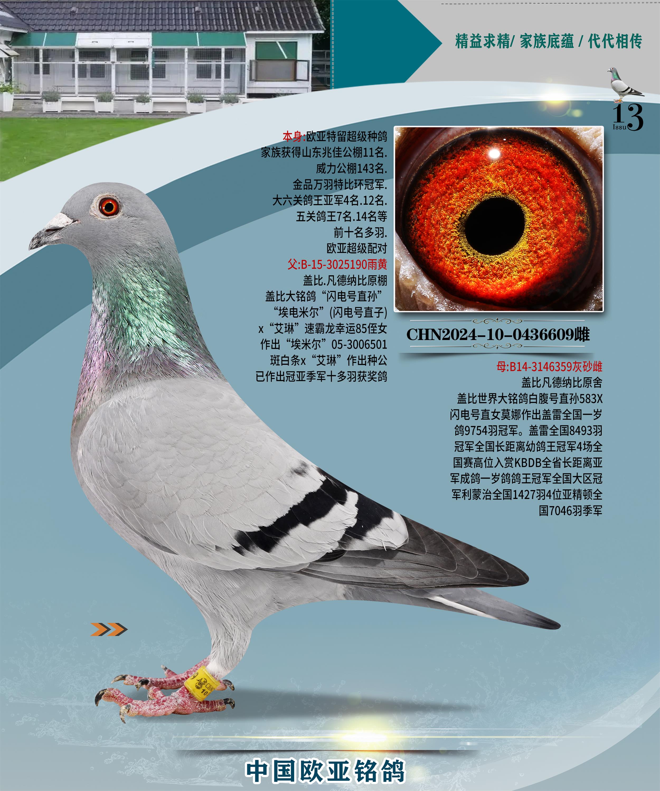 24年秋南京特比環(huán)歐亞榮獲大團(tuán)體冠軍.小團(tuán)體冠軍551公里大特比13名.14名.16名.19名.20名.21名.24名.26名.27名.28名.42名.52名.54名.57名.65名.66名.68名.70名.71名.72名.74名.76名.80名.82名.83名.84名.85名.86名.90名.92名.110名.116名.121名.122名.128名.131名.158名.161名.164名.165名.166名.172名.174名.177名.182名.195名.196名.201名.205名.208名.210名.216名.253名.269名.275名.276名.294名.296名.299名,,24年秋云南天南銅都公棚決賽415名.天南銅都小棚決賽409名.云南玉活公棚決賽102名.490名.團(tuán)體32名上籠二羽進(jìn)二羽,天南銅都大棚506公里決賽445名。熱烈祝賀河北省巨鹿縣李蘭生老師用歐亞泰山號(hào)血系連續(xù)十一年奪冠軍,河北省國(guó)家賽冠軍.全國(guó)季軍等多次前十名高位,揚(yáng)州王軍王總用歐亞利奧24年春季獲山東翔宇公棚決賽33名蓋比53名。南京劉正龍劉總用歐亞蓋比獲得24年秋山東濰坊國(guó)際公棚決賽42名.精英賽30名.三關(guān)鴿王71名.決賽86名.加站賽16名.南京市特比環(huán)A組鴿王9名.B組鴿王5名.6名.C組鴿王5名.精英賽冠軍4名.技能賽A組冠軍4名.5名.秦淮區(qū)特比環(huán)榮獲15名.46名.48名.87名。四川西昌徐亮徐總用歐亞利奧獲得涼山州聚友決賽177名.第二關(guān)亞軍雙關(guān)鴿王19名.三關(guān)鴿王105名.云南豪庭公棚決賽603名。熱烈祝賀24年四川重慶翔園鴿舍用歐亞泰山號(hào)榮獲春季400公里冠軍.秋季500公里冠軍,河北王總用詹森X利奧獲得千羽千翔公棚400公里冠軍,廣東蔡楷煥榮獲24年秋愛好者 賽鴿俱樂(lè)部三關(guān)鴿王季軍.一關(guān)420公里99名.二關(guān)450公里11名.三關(guān)520公里32名.單關(guān)季軍.7名.12名,江西李衛(wèi)興榮獲貴州紅楓公棚8名.共翔俱樂(lè)部寄養(yǎng)棚四關(guān)綜合鴿王30名.一關(guān)400公里78名.二關(guān)500公里55名.三關(guān)520公里37名.四關(guān)500公里57名.同父母獲公棚18名.雷鳴獲得武漢黃浦育翔中心冠軍,四川陳文獲得四川明鴻俱樂(lè)部300公里夢(mèng)幻2名.3名.4名.9名.10名.13名.14名.15名.31名.34名.40名.41名.42名.43名.69名.71名.72名.73名.74名.94名.95名.97名.98名.99名.419公里決賽榮獲總冠軍7名.總共歸巢9羽,四川徐亮獲豪庭決賽603名,山西鄭勇獲得山西泰鑫公棚決賽255名詹森紅狐,熱烈祝賀馬總獲得開爾(飛躍隊(duì))決賽9名獲獎(jiǎng)金1310000萬(wàn)元.第一關(guān)52名,天津津福資賽180公里96名.獲獎(jiǎng)金429543萬(wàn)元,歐亞支持全國(guó)鴿友24年秋多人報(bào)喜 祝大家取得更好成績(jī),給歐亞報(bào)喜鴿友歐亞決定給每人贈(zèng)送一羽超級(jí)種鴿。歐亞俱樂(lè)部特比環(huán)多關(guān)鴿王成績(jī):15年秋淮安特比環(huán)黑色星期一全會(huì)上籠9700多羽,當(dāng)天無(wú)鴿歸巢,第二天全會(huì)歸巢357羽,本舍歸巢158羽.前十名八羽.前一百名歸巢57羽,16年春季獲五關(guān)鴿王總冠軍,總亞軍四名.六名.七名.九名.十名.晶藝俱樂(lè)部520公里冠亞季軍5名.6名.7名.9名.11名等,火車頭冠軍.季軍6名.8名.9名.10名,16年秋晶藝俱樂(lè)部特比環(huán)520公里亞軍.季軍4名.6名.7名.9名,15年春南京白下特比環(huán)冠軍.亞軍.季軍6名.7名.8名.9名.10名.指定鴿A B組獲得冠軍.亞軍.季軍4名.5名.,17年淮安特比環(huán)亞軍.4名.5名.7名.8名.10名.六關(guān)鴿王總冠軍.4名.6名.9名.10名,寄養(yǎng)棚宿遷劉總20羽特比環(huán)獲冠軍.季軍.4名.7名.8名.9名等。18年榮獲萬(wàn)羽特比環(huán)六關(guān)鴿王總冠軍.總亞軍.總季軍.6名.8名.十名.單關(guān)四羽冠軍.二羽亞軍.四羽季軍.前十名27羽。19年秋萬(wàn)羽特比環(huán)六關(guān)鴿王總亞軍.總季軍.5名.8名等,單關(guān)二羽冠軍.三羽亞軍.一羽季軍前十名31羽。20年秋淮安市鴿會(huì)四關(guān)特比環(huán)大賽風(fēng)雨無(wú)阻鴿王亞軍.鴿王六名,金品俱樂(lè)部萬(wàn)羽特比環(huán)六關(guān)鴿王總冠軍,總亞軍.四名.五名.六名.七名.八名.十名.前二百名鴿王35羽,單關(guān)冠亞季軍前十名四十多羽,火車頭五關(guān)鴿王季軍.六名.八名.前二百名鴿王十七羽。20年春榮獲淮安五區(qū)一市四關(guān)鴿王總冠軍.亞軍.四名.八名.九名。21年秋榮獲金品萬(wàn)羽特比環(huán)大賽六關(guān)鴿王總亞軍.總季軍.四名.七名.九名.十名.單關(guān)冠亞軍季軍前十名三十多羽;疖囶^協(xié)會(huì)鴿王六名.七名.十名.單關(guān)前十名十七羽。22年秋榮獲鴿王總冠軍.總亞軍.5名.7名.8名.9名.11名.單關(guān)冠亞季軍前十名三十多羽,第一關(guān)單關(guān)前二百名四十多羽,第二關(guān)前二百名三十多羽,第三關(guān)前二百名四十多羽,第四關(guān)前二百名四十多羽,第五關(guān)前一百名53羽。23年秋榮獲鴿王季軍.五名.八名.十名.13名.17名.20名.27名等多羽鴿王.單關(guān)前十名二十多羽。公棚.寄養(yǎng)棚部分成績(jī):16年秋寧夏黃河公棚總冠軍電腦戈馬力指定通炮冠軍,17年送八羽參賽獲得鴿王八名進(jìn)獎(jiǎng)四名,支持韓總榮獲八名。支持鴿友榮獲寧夏中衛(wèi)公棚決賽總冠軍.精英賽冠軍,支持18年寧夏黃河公棚決賽冠軍詹森X泰山。安徽鼎博寄養(yǎng)棚院內(nèi)外四關(guān)鴿王總冠軍.鴿王十七名.三十七名同窩,鴿王39名.42名.58名.67名。18年山東公棚預(yù)賽冠軍.決賽65名.送八羽進(jìn)獎(jiǎng)五羽.指定獲奔馳汽車一輛。支持鴿友獲得云南藍(lán)云公棚冠軍.蓋比X佛卡門。支持鴿友榮獲云南銀集公棚決賽冠軍