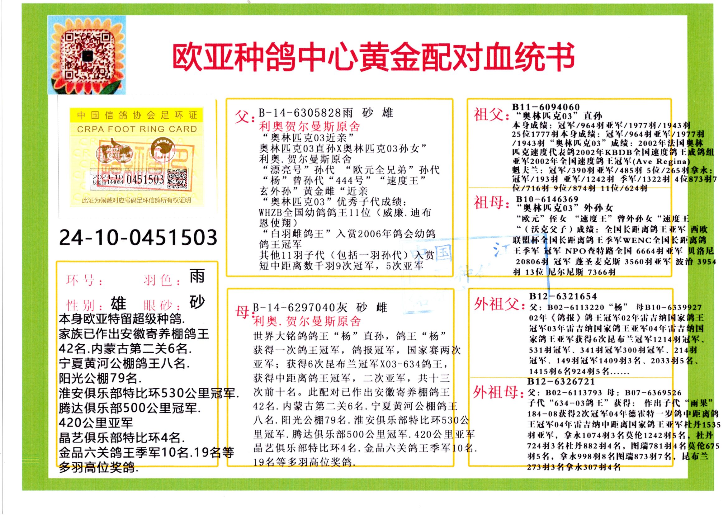 24年秋南京特比環(huán)歐亞榮獲大團(tuán)體冠軍.小團(tuán)體冠軍551公里大特比13名.14名.16名.19名.20名.21名.24名.26名.27名.28名.42名.52名.54名.57名.65名.66名.68名.70名.71名.72名.74名.76名.80名.82名.83名.84名.85名.86名.90名.92名.110名.116名.121名.122名.128名.131名.158名.161名.164名.165名.166名.172名.174名.177名.182名.195名.196名.201名.205名.208名.210名.216名.253名.269名.275名.276名.294名.296名.299名,,24年秋云南天南銅都公棚決賽415名.天南銅都小棚決賽409名.云南玉活公棚決賽102名.490名.團(tuán)體32名上籠二羽進(jìn)二羽,天南銅都大棚506公里決賽445名。熱烈祝賀河北省巨鹿縣李蘭生老師用歐亞泰山號血系連續(xù)十一年奪冠軍,河北省國家賽冠軍.全國季軍等多次前十名高位,揚州王軍王總用歐亞利奧24年春季獲山東翔宇公棚決賽33名蓋比53名。南京劉正龍劉總用歐亞蓋比獲得24年秋山東濰坊國際公棚決賽42名.精英賽30名.三關(guān)鴿王71名.決賽86名.加站賽16名.南京市特比環(huán)A組鴿王9名.B組鴿王5名.6名.C組鴿王5名.精英賽冠軍4名.技能賽A組冠軍4名.5名.秦淮區(qū)特比環(huán)榮獲15名.46名.48名.87名。四川西昌徐亮徐總用歐亞利奧獲得涼山州聚友決賽177名.第二關(guān)亞軍雙關(guān)鴿王19名.三關(guān)鴿王105名.云南豪庭公棚決賽603名。熱烈祝賀24年四川重慶翔園鴿舍用歐亞泰山號榮獲春季400公里冠軍.秋季500公里冠軍,河北王總用詹森X利奧獲得千羽千翔公棚400公里冠軍,廣東蔡楷煥榮獲24年秋愛好者 賽鴿俱樂部三關(guān)鴿王季軍.一關(guān)420公里99名.二關(guān)450公里11名.三關(guān)520公里32名.單關(guān)季軍.7名.12名,江西李衛(wèi)興榮獲貴州紅楓公棚8名.共翔俱樂部寄養(yǎng)棚四關(guān)綜合鴿王30名.一關(guān)400公里78名.二關(guān)500公里55名.三關(guān)520公里37名.四關(guān)500公里57名.同父母獲公棚18名.雷鳴獲得武漢黃浦育翔中心冠軍,四川陳文獲得四川明鴻俱樂部300公里夢幻2名.3名.4名.9名.10名.13名.14名.15名.31名.34名.40名.41名.42名.43名.69名.71名.72名.73名.74名.94名.95名.97名.98名.99名.419公里決賽榮獲總冠軍7名.總共歸巢9羽,四川徐亮獲豪庭決賽603名,山西鄭勇獲得山西泰鑫公棚決賽255名詹森紅狐,熱烈祝賀馬總獲得開爾(飛躍隊)決賽9名獲獎金1310000萬元.第一關(guān)52名,天津津福資賽180公里96名.獲獎金429543萬元,歐亞支持全國鴿友24年秋多人報喜 祝大家取得更好成績,給歐亞報喜鴿友歐亞決定給每人贈送一羽超級種鴿。歐亞俱樂部特比環(huán)多關(guān)鴿王成績:15年秋淮安特比環(huán)黑色星期一全會上籠9700多羽,當(dāng)天無鴿歸巢,第二天全會歸巢357羽,本舍歸巢158羽.前十名八羽.前一百名歸巢57羽,16年春季獲五關(guān)鴿王總冠軍,總亞軍四名.六名.七名.九名.十名.晶藝俱樂部520公里冠亞季軍5名.6名.7名.9名.11名等,火車頭冠軍.季軍6名.8名.9名.10名,16年秋晶藝俱樂部特比環(huán)520公里亞軍.季軍4名.6名.7名.9名,15年春南京白下特比環(huán)冠軍.亞軍.季軍6名.7名.8名.9名.10名.指定鴿A B組獲得冠軍.亞軍.季軍4名.5名.,17年淮安特比環(huán)亞軍.4名.5名.7名.8名.10名.六關(guān)鴿王總冠軍.4名.6名.9名.10名,寄養(yǎng)棚宿遷劉總20羽特比環(huán)獲冠軍.季軍.4名.7名.8名.9名等。18年榮獲萬羽特比環(huán)六關(guān)鴿王總冠軍.總亞軍.總季軍.6名.8名.十名.單關(guān)四羽冠軍.二羽亞軍.四羽季軍.前十名27羽。19年秋萬羽特比環(huán)六關(guān)鴿王總亞軍.總季軍.5名.8名等,單關(guān)二羽冠軍.三羽亞軍.一羽季軍前十名31羽。20年秋淮安市鴿會四關(guān)特比環(huán)大賽風(fēng)雨無阻鴿王亞軍.鴿王六名,金品俱樂部萬羽特比環(huán)六關(guān)鴿王總冠軍,總亞軍.四名.五名.六名.七名.八名.十名.前二百名鴿王35羽,單關(guān)冠亞季軍前十名四十多羽,火車頭五關(guān)鴿王季軍.六名.八名.前二百名鴿王十七羽。20年春榮獲淮安五區(qū)一市四關(guān)鴿王總冠軍.亞軍.四名.八名.九名。21年秋榮獲金品萬羽特比環(huán)大賽六關(guān)鴿王總亞軍.總季軍.四名.七名.九名.十名.單關(guān)冠亞軍季軍前十名三十多羽;疖囶^協(xié)會鴿王六名.七名.十名.單關(guān)前十名十七羽。22年秋榮獲鴿王總冠軍.總亞軍.5名.7名.8名.9名.11名.單關(guān)冠亞季軍前十名三十多羽,第一關(guān)單關(guān)前二百名四十多羽,第二關(guān)前二百名三十多羽,第三關(guān)前二百名四十多羽,第四關(guān)前二百名四十多羽,第五關(guān)前一百名53羽。23年秋榮獲鴿王季軍.五名.八名.十名.13名.17名.20名.27名等多羽鴿王.單關(guān)前十名二十多羽。公棚.寄養(yǎng)棚部分成績:16年秋寧夏黃河公棚總冠軍電腦戈馬力指定通炮冠軍,17年送八羽參賽獲得鴿王八名進(jìn)獎四名,支持韓總榮獲八名。支持鴿友榮獲寧夏中衛(wèi)公棚決賽總冠軍.精英賽冠軍,支持18年寧夏黃河公棚決賽冠軍詹森X泰山。安徽鼎博寄養(yǎng)棚院內(nèi)外四關(guān)鴿王總冠軍.鴿王十七名.三十七名同窩,鴿王39名.42名.58名.67名。18年山東公棚預(yù)賽冠軍.決賽65名.送八羽進(jìn)獎五羽.指定獲奔馳汽車一輛。支持鴿友獲得云南藍(lán)云公棚冠軍.蓋比X佛卡門。支持鴿友榮獲云南銀集公棚決賽冠軍 詹森427X520血系 速度賽6700羽冠軍。17年榮獲金馬俱樂部寄養(yǎng)棚四關(guān)鴿王總冠軍.季軍.六名.八名.第一關(guān)冠軍.亞軍.季軍四名.七名.十一名.金牌教練獎。支持鴿友18