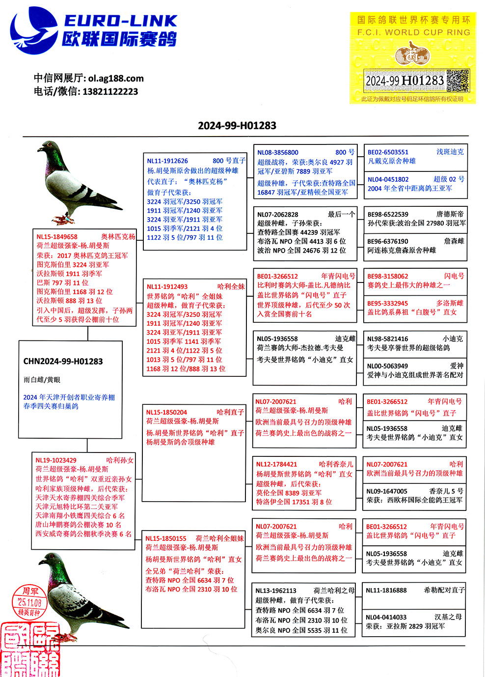 - 當(dāng)前查看拍賣(mài)鴿:哈利家族奧林匹克鴿王直女