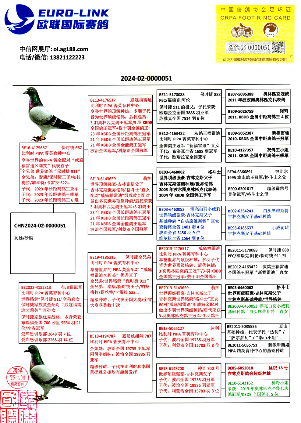 | 1607890 | 奶酪世界銘鴿“240”近親直孫 | ¥3900元 | 4次 |