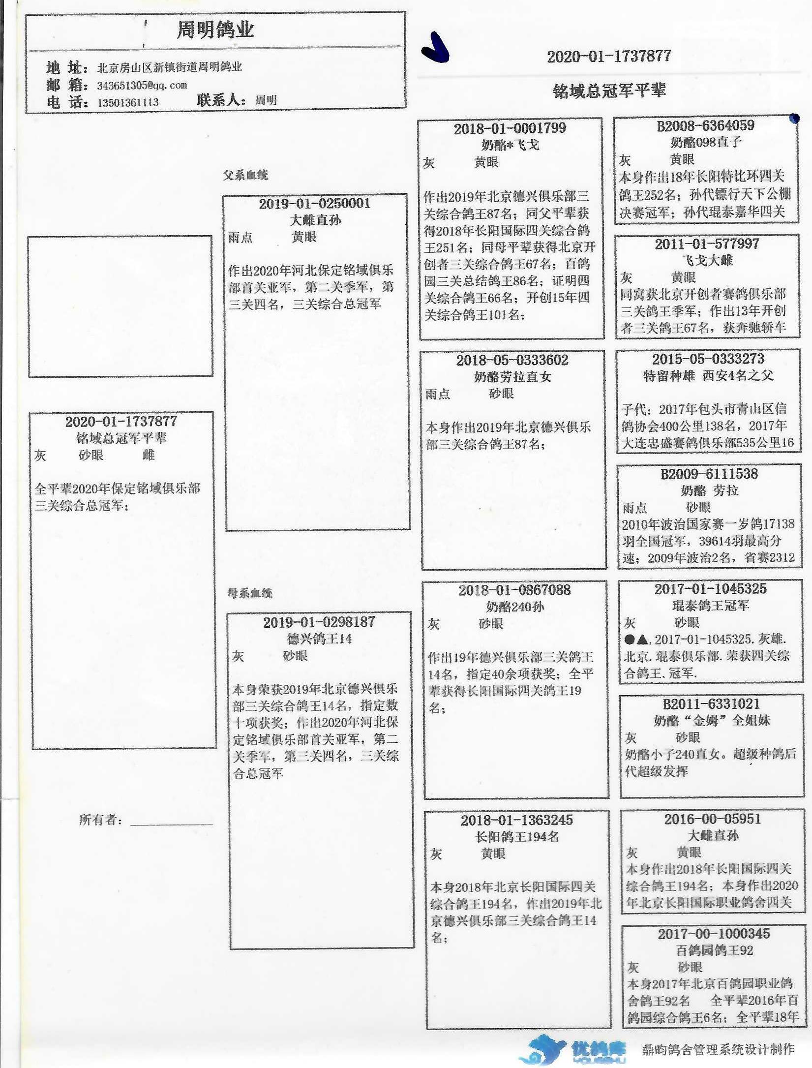 北京周明鴿業(yè) 綜合冠軍平輩-1737877