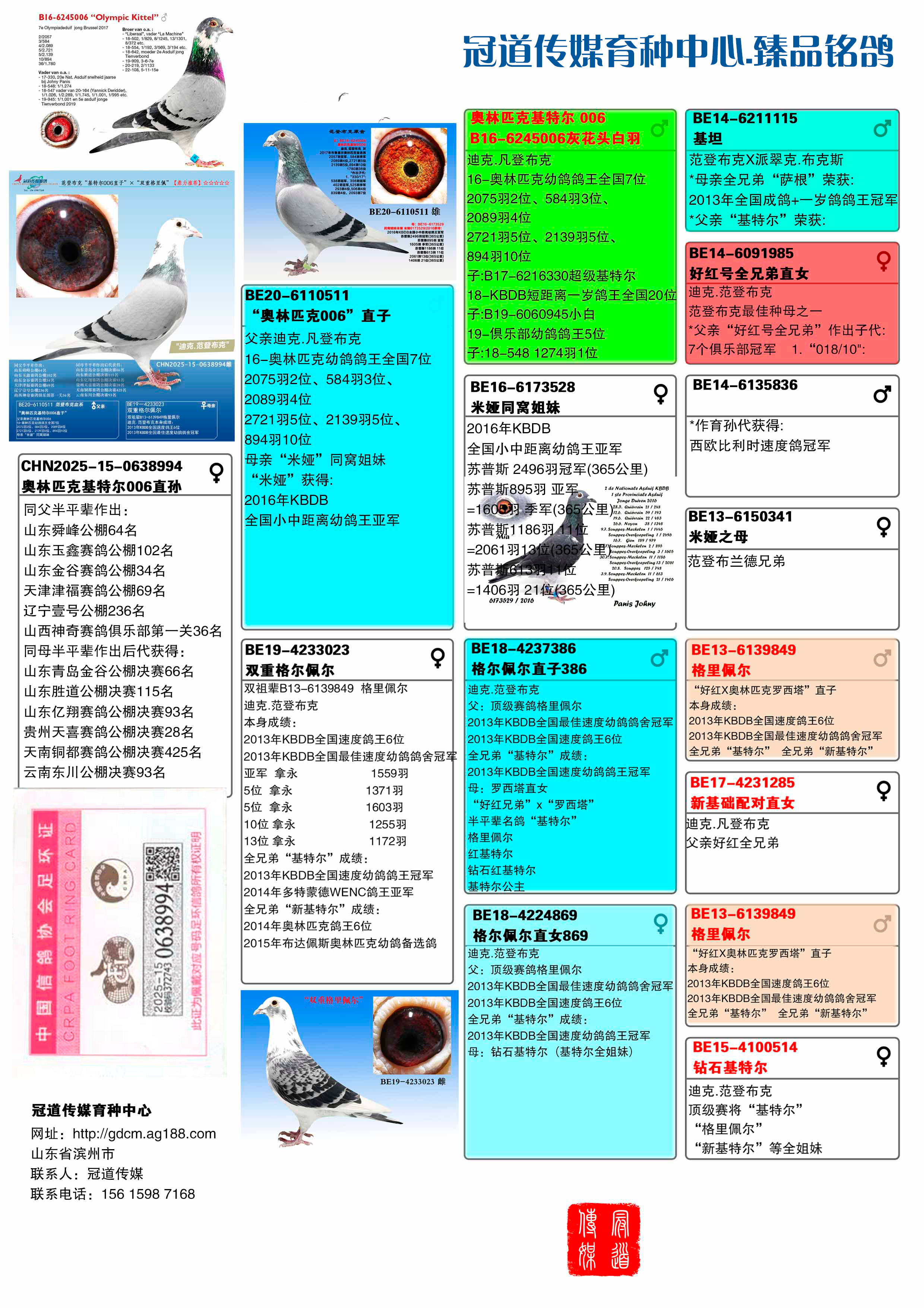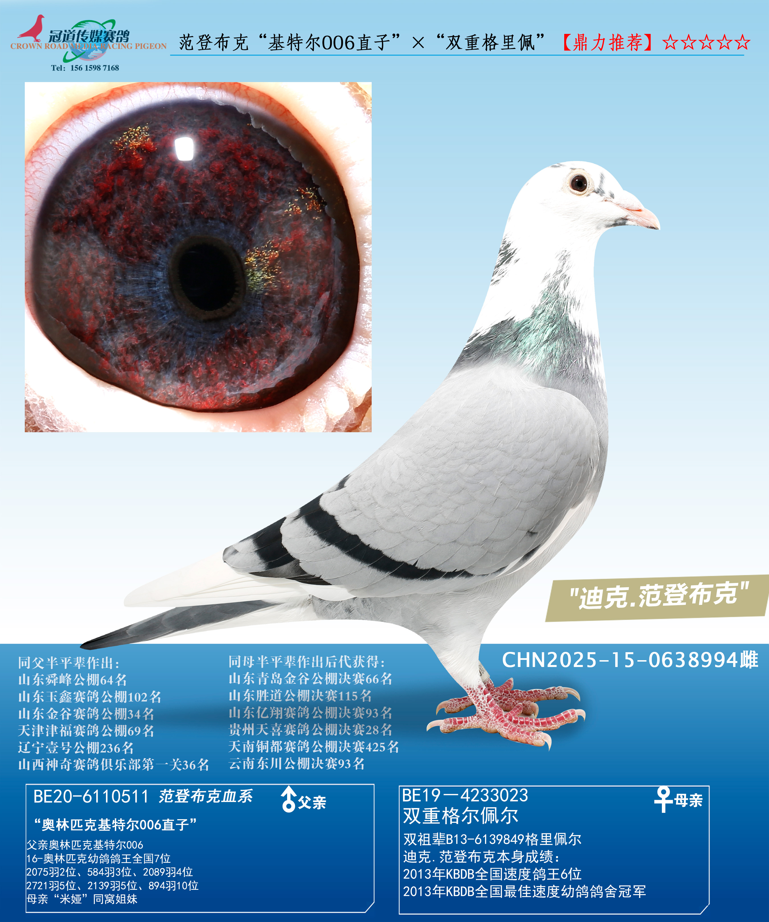 1608127 范登布克“基特爾006直子”ד雙鴿王”直女 ¥1000元 1次