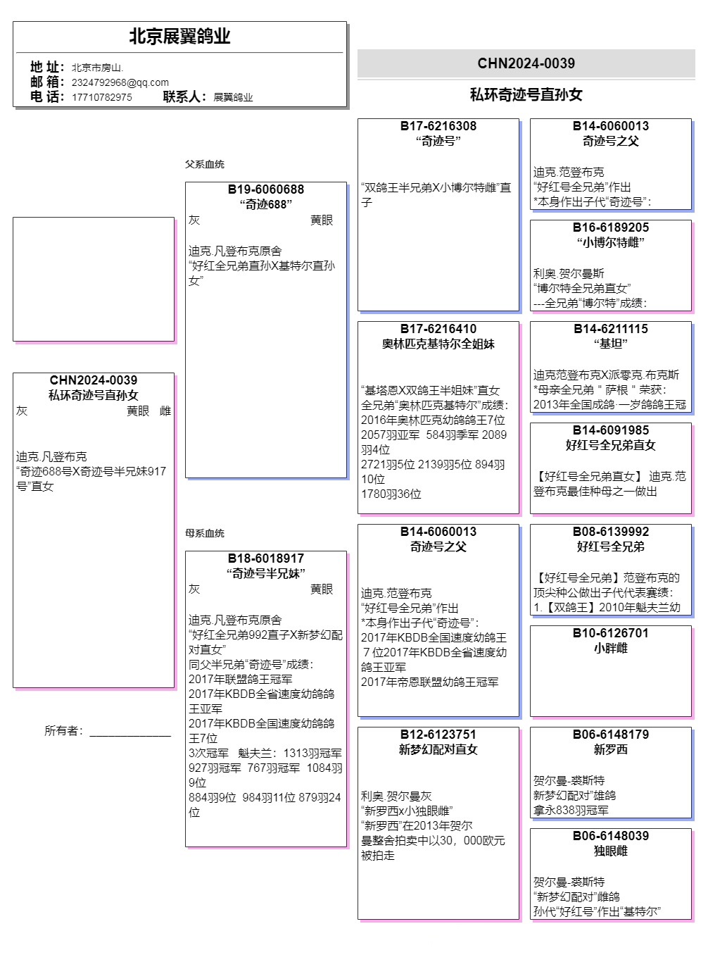 - 當(dāng)前查看拍賣鴿:迪克范登布克0039號