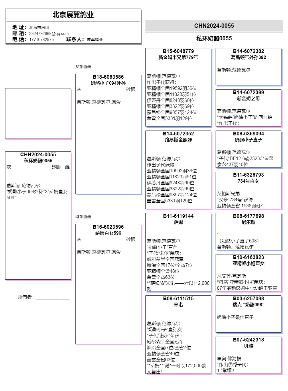 - 當前查看拍賣鴿:葛斯頓范德瓦爾0055號