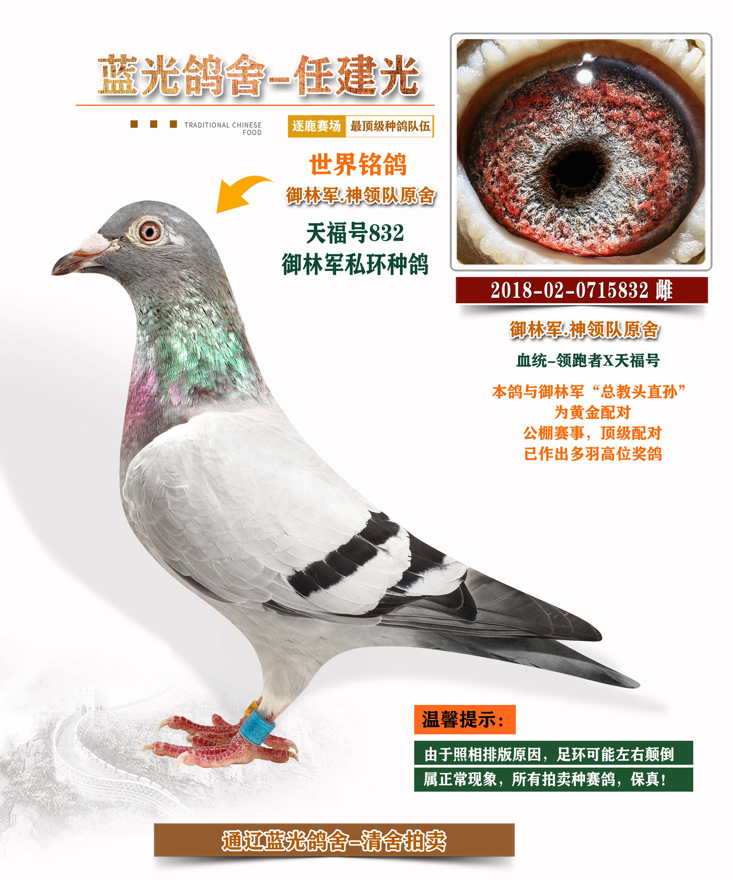 御林軍原舍-“超級金雌”天福號832(御林軍私環(huán)種鴿)