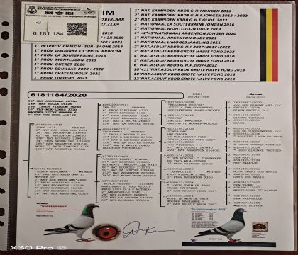 2021年燕青公棚180公里195,300公里81(指定鴿11取一,22取一,大家樂(lè)獲獎(jiǎng))500公里425名,745名,加站賽6名(指定鴿獲獎(jiǎng))。2021年大安信和公棚300公里254,420公里102(11取一,22取一,大家樂(lè)獲獎(jiǎng))500公里43名(指定鴿獲獎(jiǎng)4W加手機(jī)一部)三關(guān)鴿王八位。2022年豪飛公棚雙關(guān)綜合鴿王亞軍,大安信和公棚決賽243名,黑龍江偉路公棚457名,恒信院內(nèi)五關(guān)鴿王大獎(jiǎng)賽鴿王42位,61位,雙關(guān)綜合鴿王4位(獲獎(jiǎng)10W)。2023年大安信和公棚決賽194名(三關(guān)綜合鴿王冠軍),獲獎(jiǎng)金8W,2024年偉路公棚159名,河北唐山春興公棚101名(3關(guān)綜合鴿王季軍),唐山陽(yáng)光公棚501名,大安信和公棚加站賽7名,內(nèi)蒙古金翔賽鴿公棚865名……1996年-2024年本舍地方賽及公棚獲獎(jiǎng)無(wú)數(shù)......
