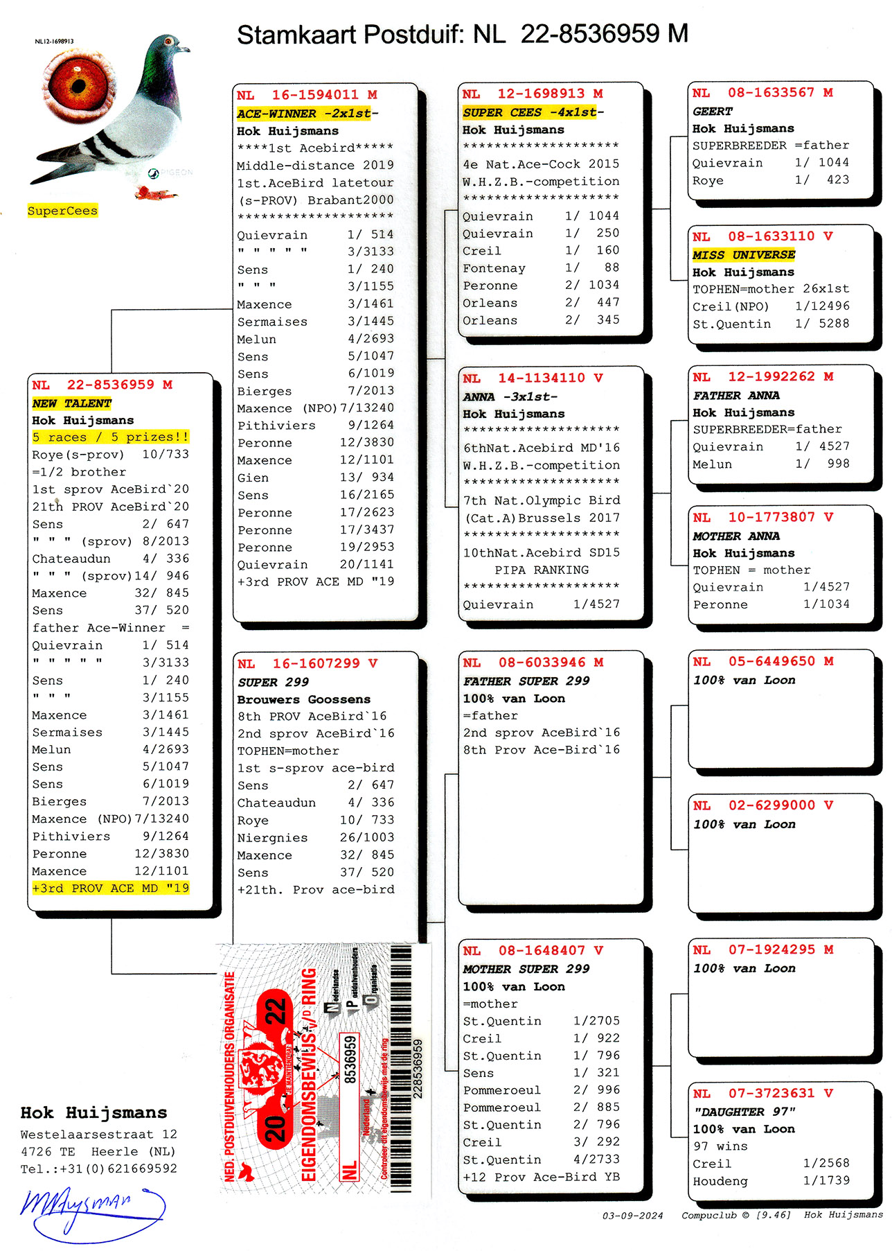 1610087 凡登布克鴿王冠軍薩甘極度近親 ¥4800元 7次