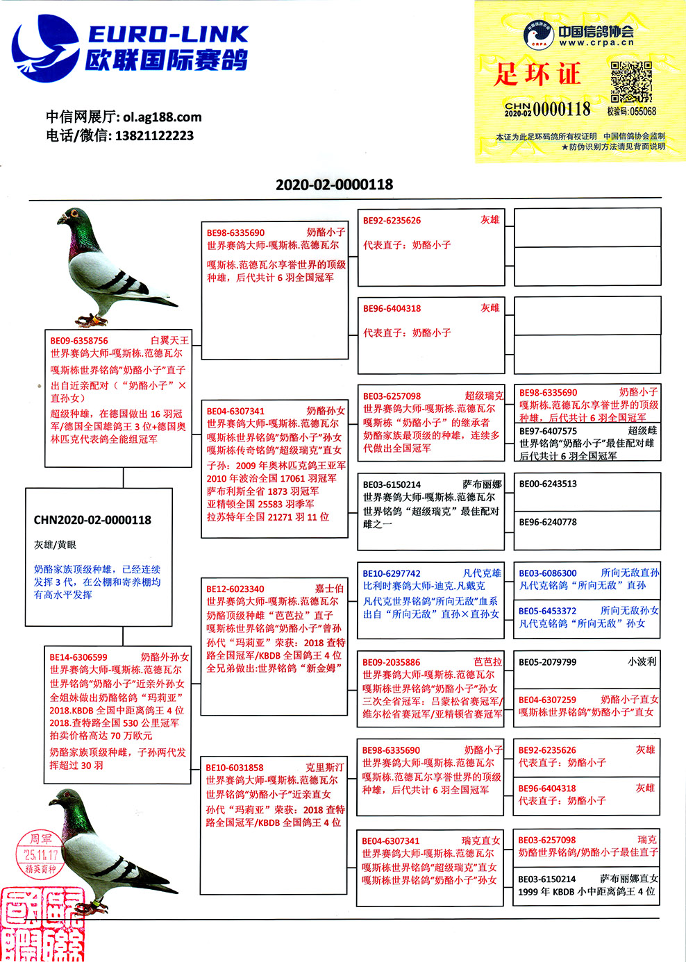1610086 蓋比世界銘鴿”閃電號“高代近親 ¥4200元 5次
