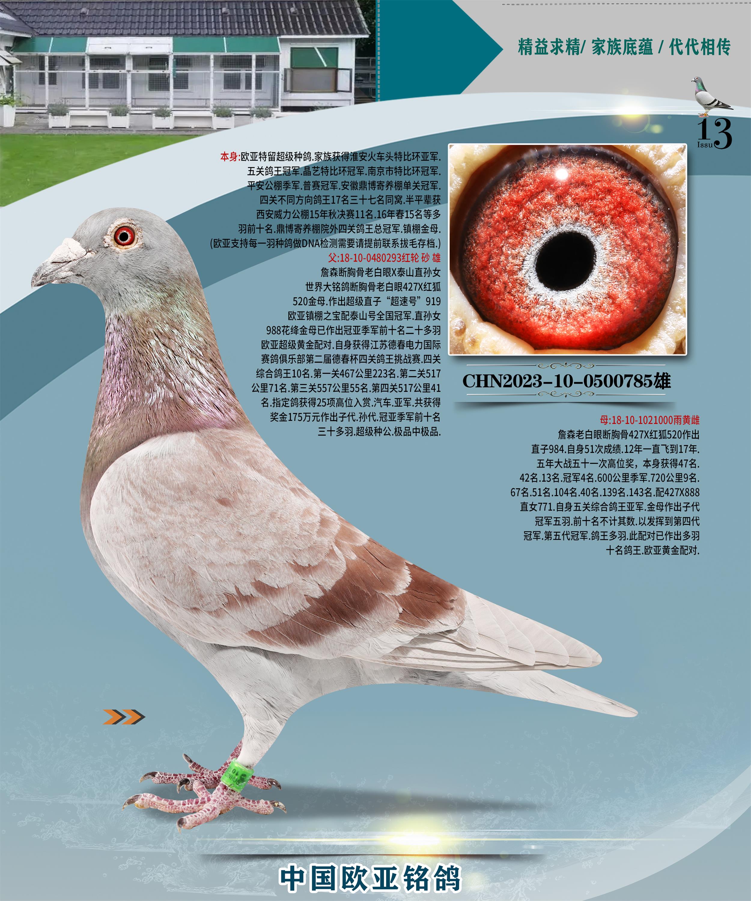 24年秋南京特比環(huán)歐亞榮獲大團(tuán)體冠軍.小團(tuán)體冠軍551公里大特比13名.14名.16名.19名.20名.21名.24名.26名.27名.28名.42名.52名.54名.57名.65名.66名.68名.70名.71名.72名.74名.76名.80名.82名.83名.84名.85名.86名.90名.92名.110名.116名.121名.122名.128名.131名.158名.161名.164名.165名.166名.172名.174名.177名.182名.195名.196名.201名.205名.208名.210名.216名.253名.269名.275名.276名.294名.296名.299名,,24年秋云南天南銅都公棚決賽415名.天南銅都小棚決賽409名.云南玉活公棚決賽102名.490名.團(tuán)體32名上籠二羽進(jìn)二羽,天南銅都大棚506公里決賽445名。熱烈祝賀河北省巨鹿縣李蘭生老師用歐亞泰山號(hào)血系連續(xù)十一年奪冠軍,河北省國(guó)家賽冠軍.全國(guó)季軍等多次前十名高位,揚(yáng)州王軍王總用歐亞利奧24年春季獲山東翔宇公棚決賽33名蓋比53名。南京劉正龍劉總用歐亞蓋比獲得24年秋山東濰坊國(guó)際公棚決賽42名.精英賽30名.三關(guān)鴿王71名.決賽86名.加站賽16名.南京市特比環(huán)A組鴿王9名.B組鴿王5名.6名.C組鴿王5名.精英賽冠軍4名.技能賽A組冠軍4名.5名.秦淮區(qū)特比環(huán)榮獲15名.46名.48名.87名。四川西昌徐亮徐總用歐亞利奧獲得涼山州聚友決賽177名.第二關(guān)亞軍雙關(guān)鴿王19名.三關(guān)鴿王105名.云南豪庭公棚決賽603名。熱烈祝賀24年四川重慶翔園鴿舍用歐亞泰山號(hào)榮獲春季400公里冠軍.秋季500公里冠軍,河北王總用詹森X利奧獲得千羽千翔公棚400公里冠軍,廣東蔡楷煥榮獲24年秋愛(ài)好者 賽鴿俱樂(lè)部三關(guān)鴿王季軍.一關(guān)420公里99名.二關(guān)450公里11名.三關(guān)520公里32名.單關(guān)季軍.7名.12名,江西李衛(wèi)興榮獲貴州紅楓公棚8名.共翔俱樂(lè)部寄養(yǎng)棚四關(guān)綜合鴿王30名.一關(guān)400公里78名.二關(guān)500公里55名.三關(guān)520公里37名.四關(guān)500公里57名.同父母獲公棚18名.雷鳴獲得武漢黃浦育翔中心冠軍,四川陳文獲得四川明鴻俱樂(lè)部300公里夢(mèng)幻2名.3名.4名.9名.10名.13名.14名.15名.31名.34名.40名.41名.42名.43名.69名.71名.72名.73名.74名.94名.95名.97名.98名.99名.419公里決賽榮獲總冠軍7名.總共歸巢9羽,四川徐亮獲豪庭決賽603名,山西鄭勇獲得山西泰鑫公棚決賽255名詹森紅狐,熱烈祝賀馬總獲得開(kāi)爾(飛躍隊(duì))決賽9名獲獎(jiǎng)金1310000萬(wàn)元.第一關(guān)52名,天津津福資賽180公里96名.獲獎(jiǎng)金429543萬(wàn)元,歐亞支持全國(guó)鴿友24年秋多人報(bào)喜 祝大家取得更好成績(jī),給歐亞報(bào)喜鴿友歐亞決定給每人贈(zèng)送一羽超級(jí)種鴿。歐亞俱樂(lè)部特比環(huán)多關(guān)鴿王成績(jī):15年秋淮安特比環(huán)黑色星期一全會(huì)上籠9700多羽,當(dāng)天無(wú)鴿歸巢,第二天全會(huì)歸巢357羽,本舍歸巢158羽.前十名八羽.前一百名歸巢57羽,16年春季獲五關(guān)鴿王總冠軍,總亞軍四名.六名.七名.九名.十名.晶藝俱樂(lè)部520公里冠亞季軍5名.6名.7名.9名.11名等,火車(chē)頭冠軍.季軍6名.8名.9名.10名,16年秋晶藝俱樂(lè)部特比環(huán)520公里亞軍.季軍4名.6名.7名.9名,15年春南京白下特比環(huán)冠軍.亞軍.季軍6名.7名.8名.9名.10名.指定鴿A B組獲得冠軍.亞軍.季軍4名.5名.,17年淮安特比環(huán)亞軍.4名.5名.7名.8名.10名.六關(guān)鴿王總冠軍.4名.6名.9名.10名,寄養(yǎng)棚宿遷劉總20羽特比環(huán)獲冠軍.季軍.4名.7名.8名.9名等。18年榮獲萬(wàn)羽特比環(huán)六關(guān)鴿王總冠軍.總亞軍.總季軍.6名.8名.十名.單關(guān)四羽冠軍.二羽亞軍.四羽季軍.前十名27羽。19年秋萬(wàn)羽特比環(huán)六關(guān)鴿王總亞軍.總季軍.5名.8名等,單關(guān)二羽冠軍.三羽亞軍.一羽季軍前十名31羽。20年秋淮安市鴿會(huì)四關(guān)特比環(huán)大賽風(fēng)雨無(wú)阻鴿王亞軍.鴿王六名,金品俱樂(lè)部萬(wàn)羽特比環(huán)六關(guān)鴿王總冠軍,總亞軍.四名.五名.六名.七名.八名.十名.前二百名鴿王35羽,單關(guān)冠亞季軍前十名四十多羽,火車(chē)頭五關(guān)鴿王季軍.六名.八名.前二百名鴿王十七羽。20年春榮獲淮安五區(qū)一市四關(guān)鴿王總冠軍.亞軍.四名.八名.九名。21年秋榮獲金品萬(wàn)羽特比環(huán)大賽六關(guān)鴿王總亞軍.總季軍.四名.七名.九名.十名.單關(guān)冠亞軍季軍前十名三十多羽;疖(chē)頭協(xié)會(huì)鴿王六名.七名.十名.單關(guān)前十名十七羽。22年秋榮獲鴿王總冠軍.總亞軍.5名.7名.8名.9名.11名.單關(guān)冠亞季軍前十名三十多羽,第一關(guān)單關(guān)前二百名四十多羽,第二關(guān)前二百名三十多羽,第三關(guān)前二百名四十多羽,第四關(guān)前二百名四十多羽,第五關(guān)前一百名53羽。23年秋榮獲鴿王季軍.五名.八名.十名.13名.17名.20名.27名等多羽鴿王.單關(guān)前十名二十多羽。公棚.寄養(yǎng)棚部分成績(jī):16年秋寧夏黃河公棚總冠軍電腦戈馬力指定通炮冠軍,17年送八羽參賽獲得鴿王八名進(jìn)獎(jiǎng)四名,支持韓總榮獲八名。支持鴿友榮獲寧夏中衛(wèi)公棚決賽總冠軍.精英賽冠軍,支持18年寧夏黃河公棚決賽冠軍詹森X泰山。安徽鼎博寄養(yǎng)棚院內(nèi)外四關(guān)鴿王總冠軍.鴿王十七名.三十七名同窩,鴿王39名.42名.58名.67名。18年山東公棚預(yù)賽冠軍.決賽65名.送八羽進(jìn)獎(jiǎng)五羽.指定獲奔馳汽車(chē)一輛。支持鴿友獲得云南藍(lán)云公棚冠軍.蓋比X佛卡門(mén)。支持
