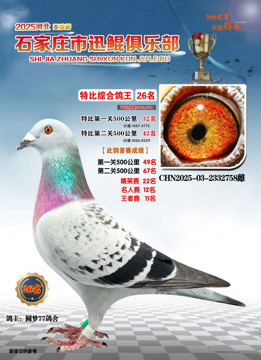 - 當(dāng)前查看拍賣鴿:石家莊迅鯤特比鴿王26名