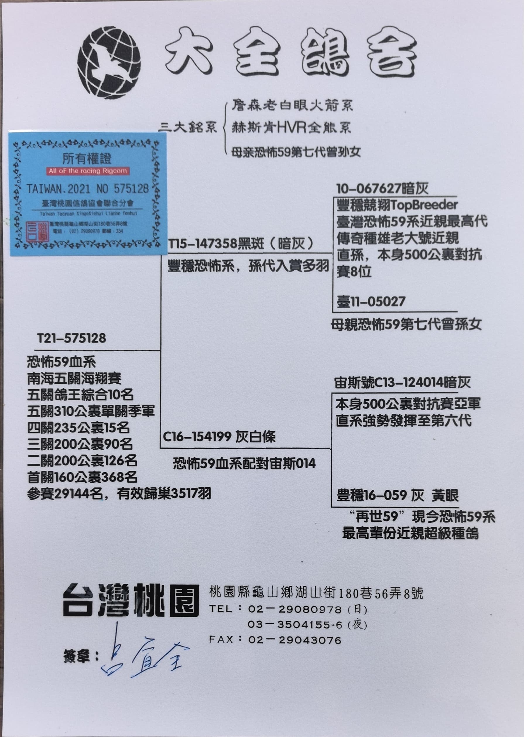 - 當(dāng)前查看拍賣鴿:臺(tái)灣大全鴿舍恐怖59血系配對(duì)宙斯014
