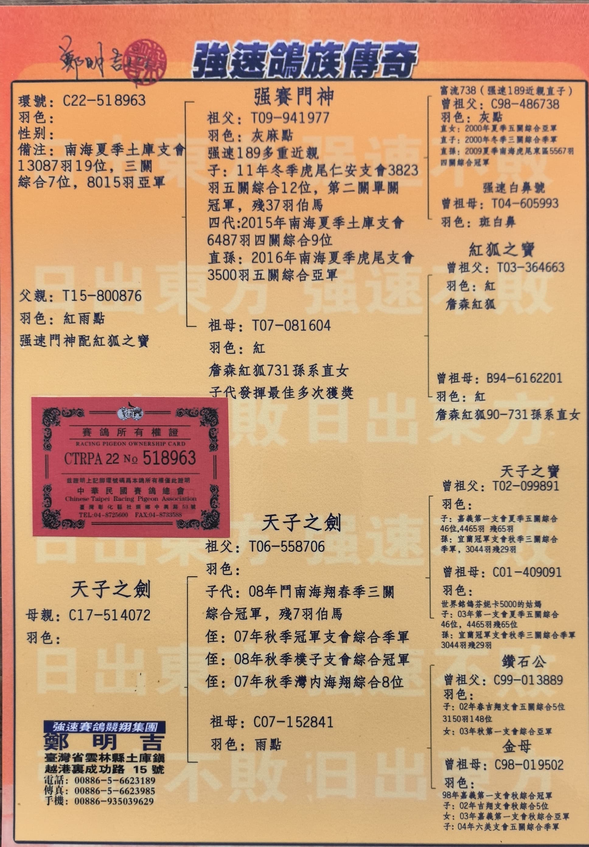 - 當(dāng)前查看拍賣鴿:臺灣強(qiáng)速賽鴿竟翔紅狐血系本身榮獲三關(guān)綜合