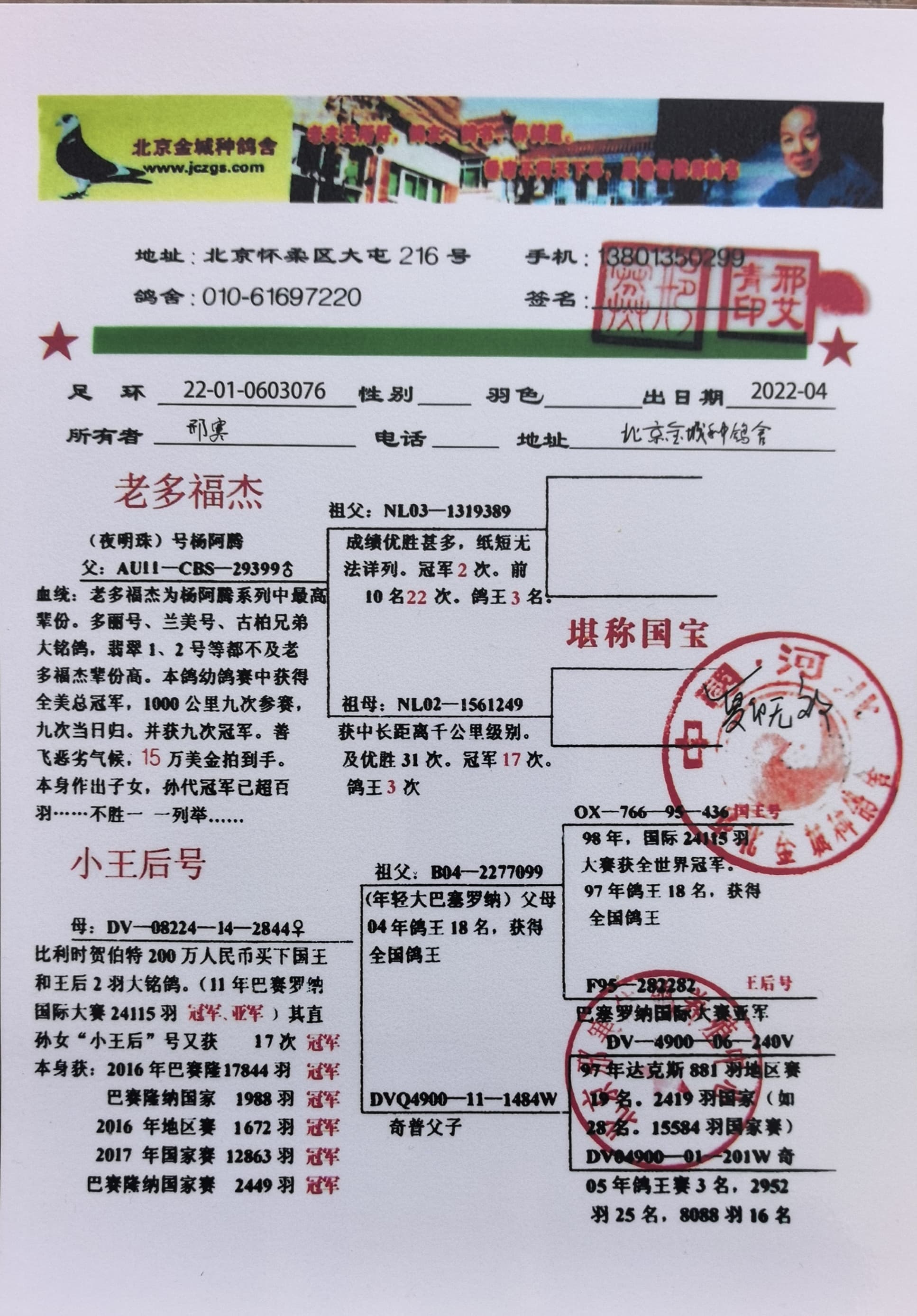 - 當(dāng)前查看拍賣鴿:北京金城種鴿舍老多福杰(夜明珠)號楊阿騰