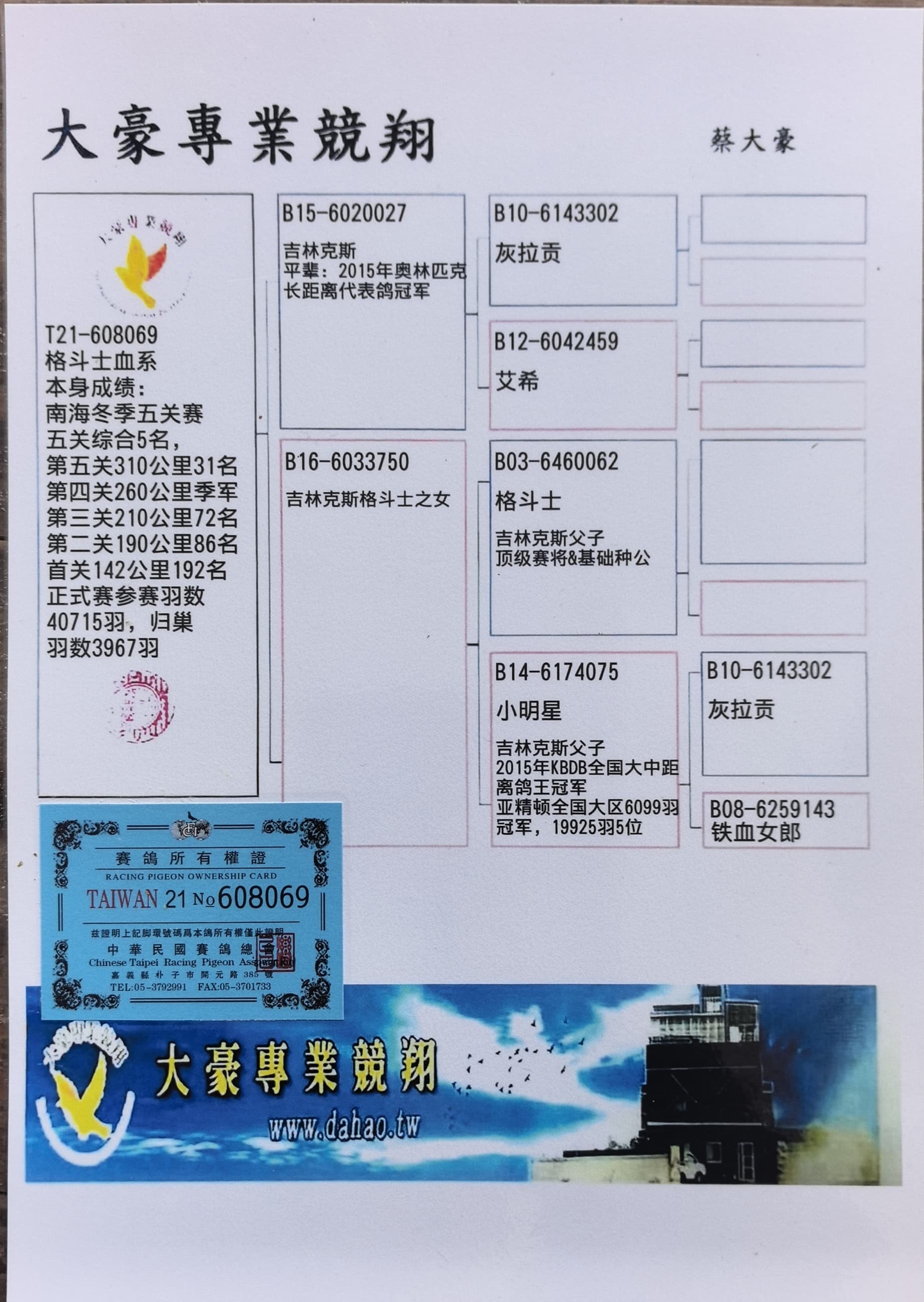 - 當(dāng)前查看拍賣鴿:大豪專業(yè)競翔格斗士血系本身成績五關(guān)綜合5