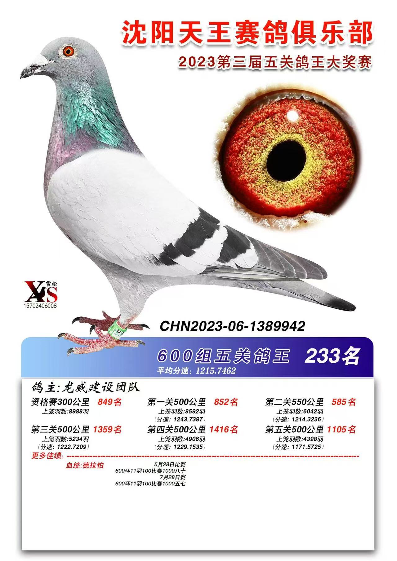 1610426 鴿王167名 ¥100元 1次